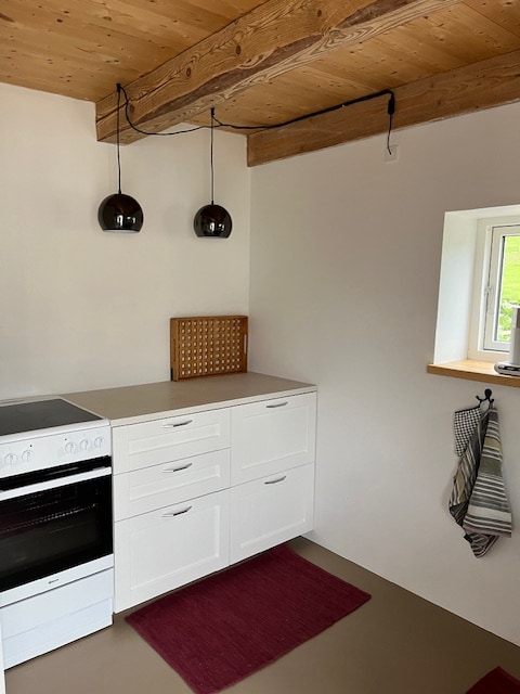 गेस्ट हाऊसमध्ये स्वतःचे बाथरूम आणि किचन आहे. याला खाजगी प्रवेशद्वार आणि पार्किंग आहे. तुम्ही प्रवास करत असताना एक किंवा दोन रात्रीसाठी उत्तम. उन्हाळ्यात राहण्यासाठी नाही. भाडेकरू स्वतःहून चेक इन करू शकतात. भाडेकरूची इच्छा असल्याशिवाय मी होस्ट म्हणून स्वागत करणार नाही. स्लीप्स 4 डबल बेड: 180x200 सिंगल बेड: 90x200 बेड: 120x200 स्वच्छता, बेड लिनन आणि टॉवेल्स समाविष्ट आहेत. डिशवॉशर आणि अंडरफ्लोअर हीटिंग हा परिसर निसर्गरम्य आहे आणि तिथे चालण्यासाठी अनेक चांगले मार्ग आहेत.