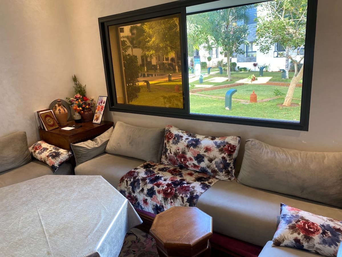 Skhirat मध्ये तुमचे स्वागत आहे! पहिल्या मजल्यावरील शांत आणि सुरक्षित निवासस्थानी असलेले आमचे अपार्टमेंट वर्षभर अपवादात्मक आराम देते. बीचपासून फक्त 5 मिनिटांच्या अंतरावर आणि 9 वेगवेगळ्या बीचच्या जवळ. व्हिजिटर्ससाठी सोयीस्कर ☞ स्वागत संपूर्ण बिल्डिंगमध्ये विनामूल्य ☞ पार्किंग दिवसरात्र बेबीसिटिंगसह सुरक्षित ☞ निवासस्थान ☞ महामार्गाजवळ, रबाट आणि कॅसाब्लांका या प्रमुख शहरांमध्ये प्रवेश सुलभ करणे हाय स्पीड ☞ इंटरनेट तुमच्या करमणुकीसाठी ☞ स्मार्ट टीव्ही