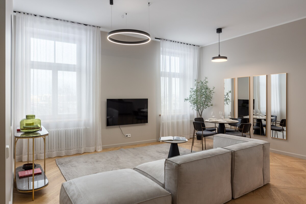 काका स्ट्रीटवरील शहराच्या मध्यभागी असलेल्या खाजगी पार्कचे प्रवेशद्वार असलेले सुंदर नवीन स्टुडिओ अपार्टमेंट. मोहकता आणि आधुनिक तपशीलांसह डिझाइन केलेले, हा स्टुडिओ फ्लॅट उबदार, सूर्यप्रकाशाने भरलेला आणि खूप शांत आहे. तरीही दरवाजांच्या मागे तुम्हाला कॅफे, बुटीक आणि सुपरमार्केट्ससह एक व्यस्त रस्ता सापडेल. तुम्ही रिगाच्या मध्यभागी आहात! "ओल्ड टाऊन" 3 किमीपेक्षा कमी अंतरावर आहे किंवा तुमच्या दारावर सार्वजनिक वाहतुकीचे काही थांबे उपलब्ध आहेत. कामासाठी किंवा विश्रांतीसाठी योग्य, ते 2 गेस्ट्सपर्यंत सामावून घेऊ शकते.