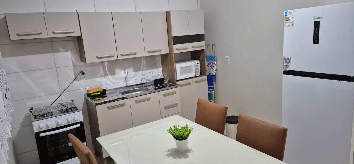 एअर कंडिशन केलेला सुईट, पूर्ण किचन, वायफाय, नेटफ्लिक्स आणि लाँड्रीसह टीव्ही असलेले मोहक मिनी घर. आपुलकीने बनवलेली जागा, आराम करण्यासाठी किंवा मनःशांतीने काम करण्यासाठी आदर्श. मॉनिटर केलेले प्रवेशद्वार, सुरक्षित आणि शांत आसपासचा परिसर. 6 इंटरेस्ट - फ्री हप्त्यांपर्यंत 💲पेमेंट करा 📍खबरदारी: त्याला गॅरेज नाही.