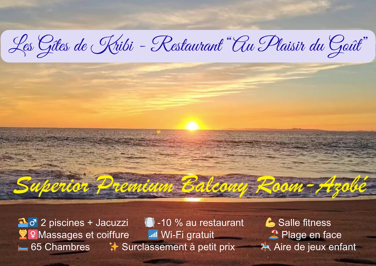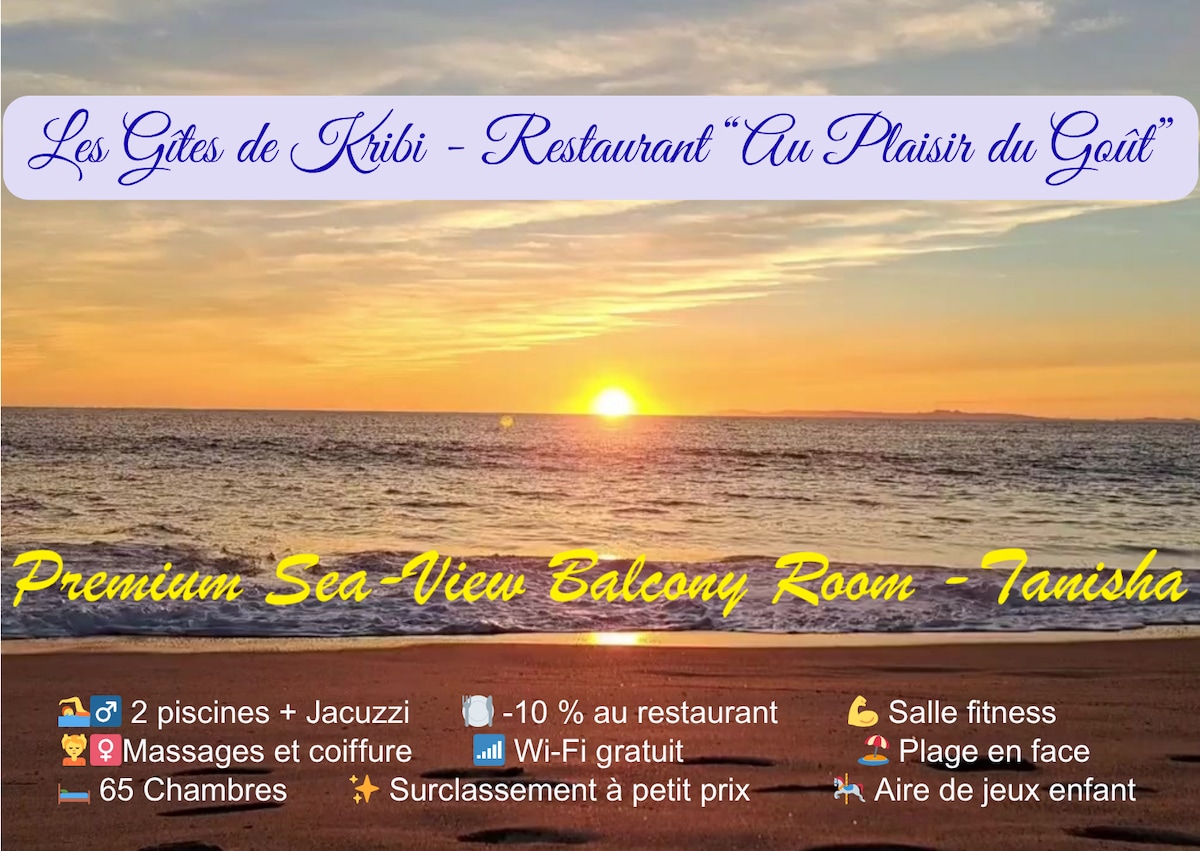 En couple, en famille , en groupe , le CARDINAL Hôtel. vous reçoit sur mesure Un cadre unique à KRIBI , vous apprécierez les couchers de soleil , la vue sur l'océan , la plage de sable fin ..... Laissez aller vos envies un restaurant et un bar vous permettront d’apprécier ...