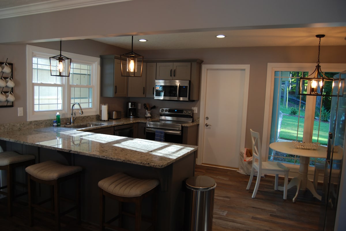 नीली हेन्री लेकमध्ये तुमचे स्वागत आहे! आमचे आरामदायक कॅरेज हाऊस खाजगी बोट रॅम्प आणि डॉकसह एका शांत ठिकाणी आहे. ही तलावाकाठची प्रॉपर्टी फिशिंग ट्रिप, गोल्फ ट्रिप, जोडपे रिट्रीट, कौटुंबिक सुट्टी आणि इतर बऱ्याच गोष्टींसाठी योग्य आहे. ही खाजगी 3 बेडरूम, 2 पूर्ण बाथ 6 झोपते आणि गॅरेजच्या वर आहे. *केवळ पायऱ्यांद्वारे ॲक्सेसिबल 3 पायऱ्यांच्या फ्लाइट्स. हे घर लहान मुलांसाठी (तलावाचा ॲक्सेस, काचेचे टेबले, लहान खेळाचे भाग, उंच बाल्कनी) योग्य असू शकत नाही. पाळीव प्राण्यांना परवानगी नाही! परमिट# 2025 -147