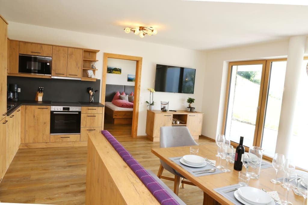 Meine Unterkunft besteht aus 2 separaten Wohnungseinheiten. Diese Komfortwohnung bietet 3 SZ, Wohnküche, 3 TV, Essbereich und komplett ausgestatteter Küchenzeile: großer Kühl- und Gefrierschrank, Geschirrspüler, Ceranfeld, Ofen mit Grillfunktion und integrierter Mikrowelle, Spüle, Kaffeemaschine für Filterkaffee, Wasserkocher, Toaster. 2 Badezimmer, 2 WC, Wärmekabine Schwedenofen Balkon WLAN Skibus Brötchenservice gratis parken Nächtigungsabgabe € 4,-/Person/Nacht - Vor Ort in BAR zu bezahlen