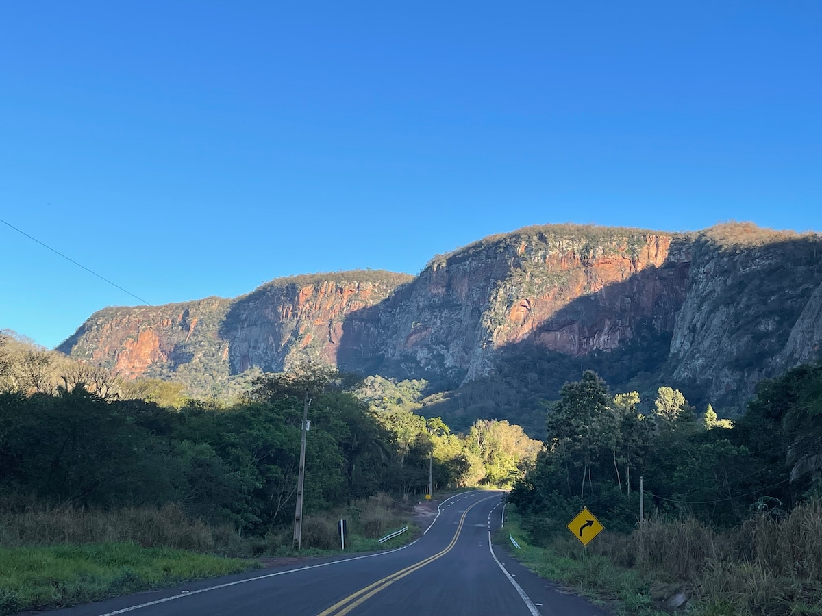 फॉर्मोसो नदीच्या काठावर आरामदायक आणि विशेष जागा; बोनिटो शहराच्या मध्यभागी (15 किमी) अगदी जवळ. ब्राझीलमधील सर्वात सुंदर जागांपैकी एकामध्ये निसर्ग, शांतता आणि प्रायव्हसी. धबधबे, डायव्हिंग स्ट्रेच आणि अनेक डेकसह आंघोळीसाठी योग्य असलेल्या फार्मोसो नदीचा लांब पल्ला. महत्त्वाचे: 1) आम्ही पाळीव प्राणी स्वीकारत नाही. 2) भेटी गेस्ट्स मानल्या जातात (मूल्यांच्या माहितीसाठी पहा).
