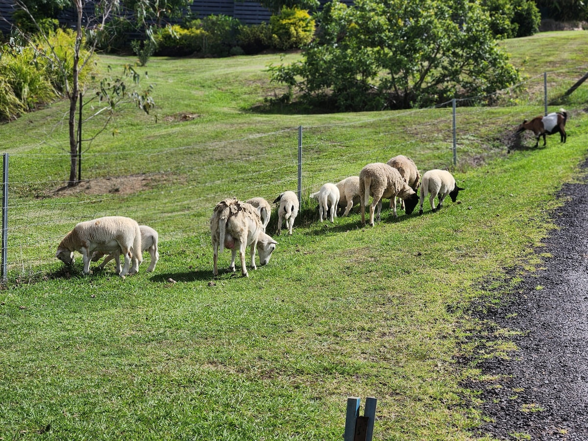 आधुनिक सुविधांसह तुमच्या खाजगी, उबदार, हाताने बांधलेल्या अडाणी दगडी कॉटेजमध्ये परत जा. 15 एकर छंद फार्मवरील ब्लॅकॉल रेंजच्या पायथ्याशी वसलेले. सनशाईन कोस्टच्या सर्व आश्चर्यांच्या जवळ. तुमचे दिवस ॲक्टिव्हिटीजने भरलेले असू शकतात आणि आगीच्या बाजूला आराम करणाऱ्या स्टार्समध्ये तुमच्या रात्री ब्लँकेट केल्या जाऊ शकतात, हातात मद्यपान करू शकतात. आम्हाला वाटते की तुम्हाला तुमचे वास्तव्य आवडेल आणि रिचार्ज आणि प्रेरणा मिळेल. चहा, नेस्प्रेसो कॉफी, दूध आणि शर्करा, बेसिक टॉयलेटरीज आणि टॉयलेट पेपर पुरवले जातात.