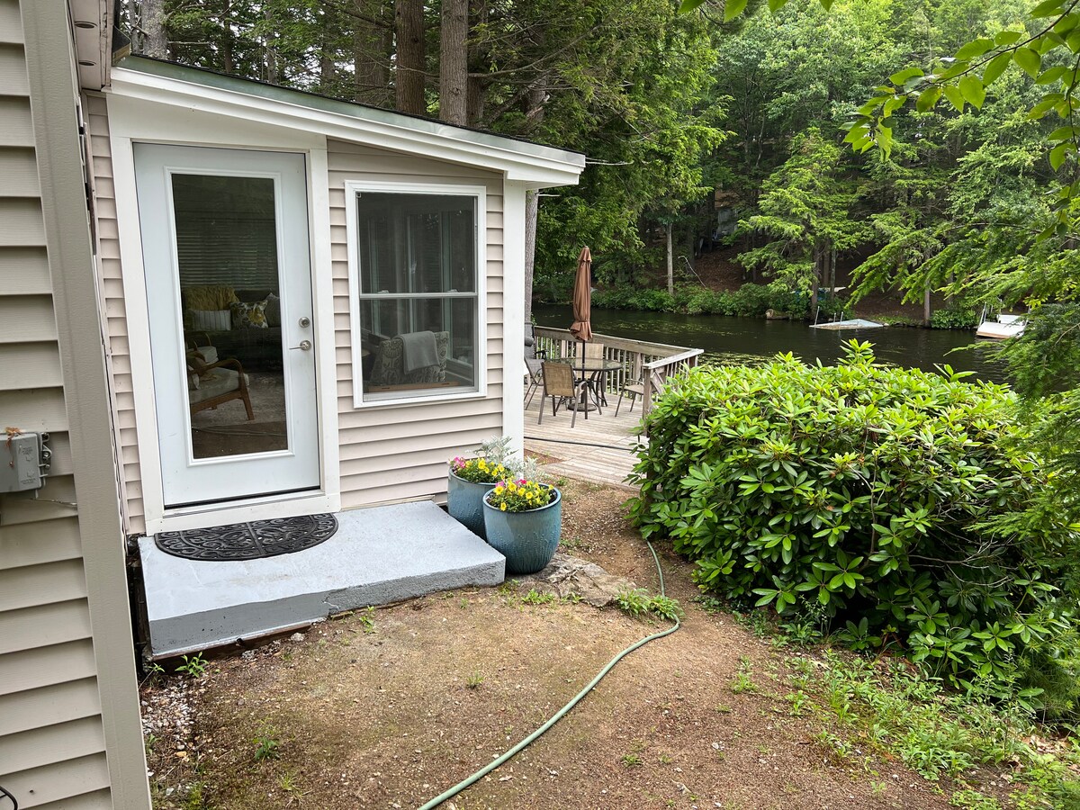 तलाव आणि घाण रस्त्यांवर अतिशय उबदार, सुंदर कॉटेज. यार्ड: बसण्याच्या जागा, प्रोपेन फायर पिट, यार्डमध्ये कुंपण. आत वाचन क्षेत्रे, डीव्हीडी, वायफाय, पुस्तके, रंगीबेरंगी पुस्तके, कोडे, गेम्स यांचा समावेश आहे. रोबोट आणि कायाक्सचा आनंद घ्या किंवा तुमची स्वतःची बोट आणा. आम्ही अँटिक ॲलीवर आहोत आणि स्टेट पार्क्स जवळ (2 मैलांच्या अंतरावर) आहेत. चक्स्टर्स, कॉनकॉर्ड, पोर्ट्समाऊथ किंवा तलाव प्रदेशात एका दिवसाचा आनंद घ्या. तलावाजवळील जीवनाचा आनंद घ्या! कोणतेही प्राणी नाहीत (क्लीनरसाठी आरोग्याची चिंता) 4 प्रौढ किंवा 2 प्रौढ 3 मुले. लाईफ जॅकेट्स दिली