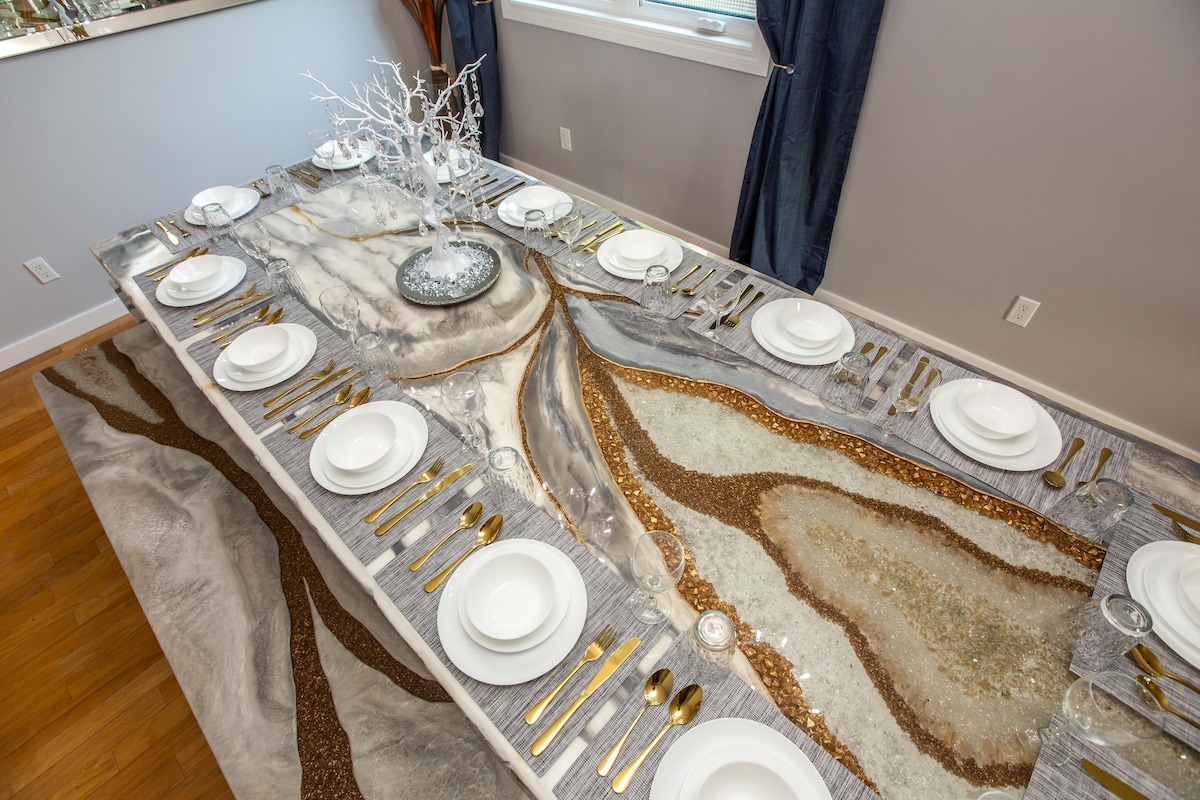 हे घर फार्महाऊस थीम असलेले घर आणि संपूर्ण स्मार्टहोम यांच्यामध्ये परिपूर्ण, अनोखे एकत्र येणे आहे. मोठ्या आणि लहान ग्रुप्ससाठी योग्य, किंग बेड्स ते बंक बेड्स, हे घर तुमच्या एडमंटन वास्तव्यासाठी योग्य आहे! शेरवुड पार्कमधील कोणत्याही गोष्टीपासून 5 मिनिटे आणि शॉ कॉन्फरन्स सेंटर, नॉर्थलँड्स आणि वेस्ट एडमंटन मॉलसारख्या ठिकाणांपासून 20 मिनिटे. या स्मार्ट होममध्ये प्रत्येक रूममध्ये एक इको डिव्हाईस देखील आहे, ज्यामुळे तुम्हाला संगीतापासून ते लाईट्सपासून ते टीव्हीपर्यंत सर्व काही नियंत्रित करता येते. साधे आणि मजेदार!