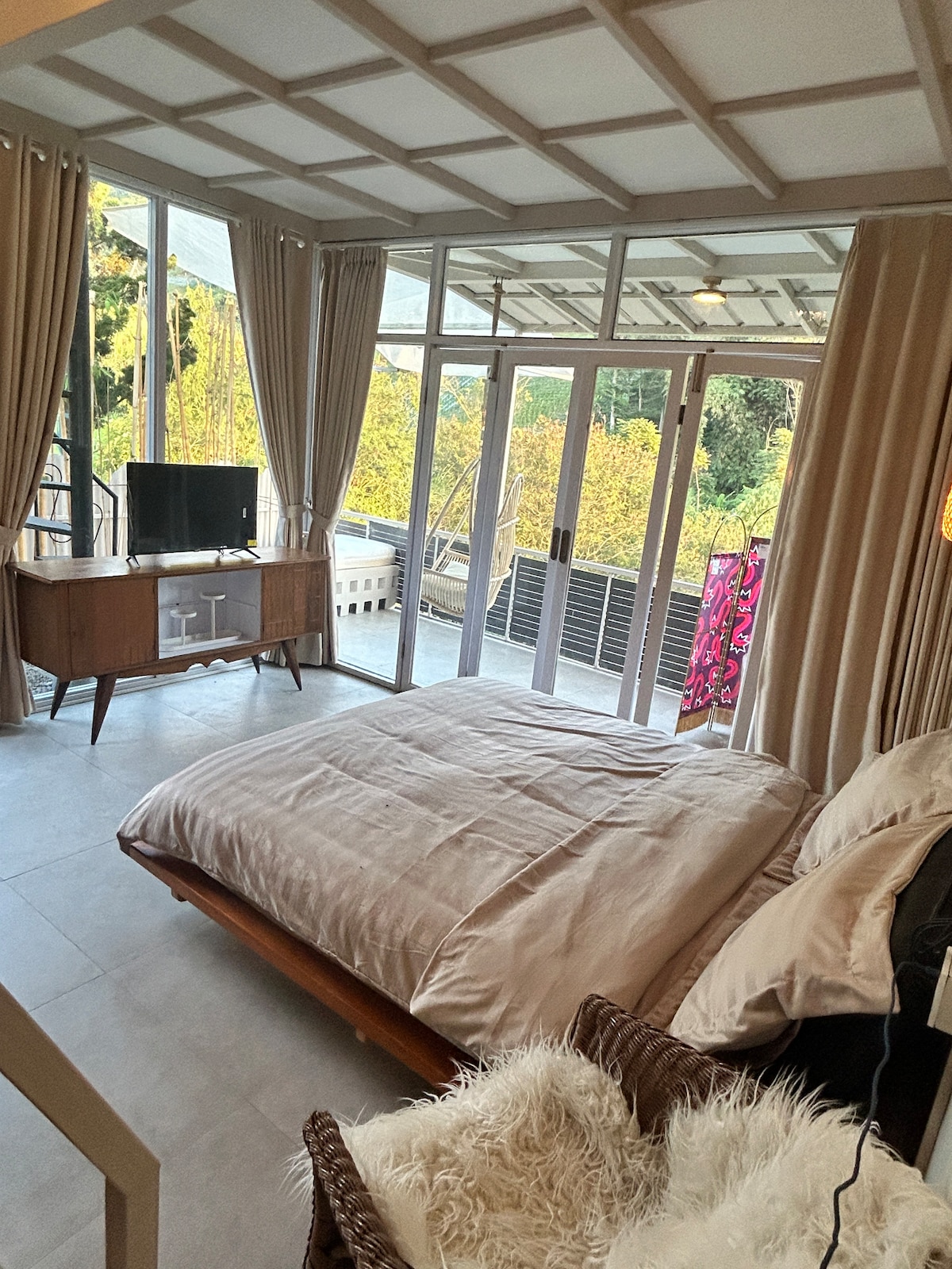 Fasilita тАв 1 King size bed тАв 2 Extra Bed тАв Sofa тАв Tv тАв 2 Handuk тАв Alat BBQ тАвAlat Makan тАв Jacuzzi тАв Gazebo тАв Api Unggun тАв Toilet Free breakfast 2 pax