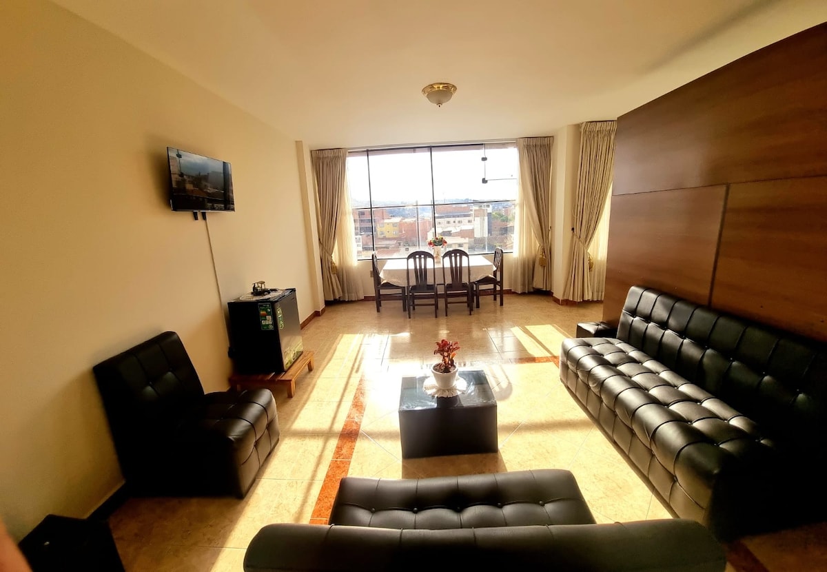 आमच्या मध्यवर्ती, शांत, साधे, आरामदायक आणि परवडणाऱ्या अपार्टमेंटमध्ये रहा. पर्यटन, खेळ किंवा कामासाठी येणाऱ्या कुटुंबांसाठी किंवा ग्रुप्ससाठी आदर्श. ओल्ड टाऊन, प्लाझा डी अरमास, सेंट्रल मार्केट, बोलिव्हार पार्क, सुप्रीम कोर्ट, म्युझियम्स, सुक्र स्टेडियम, जेआरए कोलिझियम जवळ. शहराच्या विशेषाधिकारित दृश्यांसह रस्त्याचे प्रवेशद्वार, प्रशस्त आणि प्रकाशित रूम्स. मोठे आणि सुसज्ज किचन, कपड्यांचे वॉशिंग मशीन. वायफाय आणि केबल टीव्हीसह 55"टीव्हीसह आरामदायक लिव्हिंग रूम. @hugoaliagaloayza