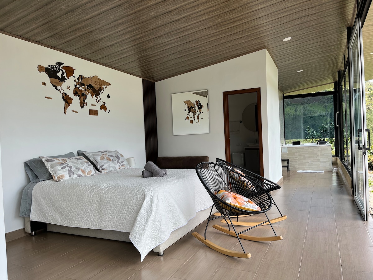 El cuarto en formato loft se encuentra en medio de un cafetal rodeado por bosque. El lugar perfecto para observar aves y tener intimidad con la naturaleza. Mañanas nubladas y atardeceres únicos! La habitación cuenta con baño privado y una pequeña cocineta con lo necesario para pasar unos días allí de forma totalmente independiente.p y desconectada.