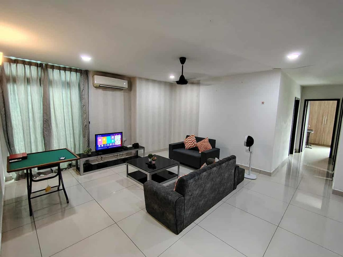 जेव्हा तुम्ही या मध्यवर्ती ठिकाणी वास्तव्य कराल तेव्हा तुमचे कुटुंब प्रत्येक गोष्टीच्या जवळ असेल. मलेशिया IOI सिटी मॉल (पुत्राजया) मधील सर्वात मोठ्या शॉपिंग मॉलजवळ येथे कारण....फक्त 2 मिनिटे ... 3 बेडरूम्स फॅमिली हॉलिडे सुईटमध्ये 3 बाथरूम, हाय स्पीड वायफायसह लिव्हिंग रूममध्ये 42 इंच स्मार्ट टीव्ही आहे. कुटुंबासाठी अनुकूल आणि गोपनीयता अनुकूल, किचन पूर्णपणे सुसज्ज, तुम्ही तुमच्या घराप्रमाणे कधीही स्वयंपाक करू शकता. कुटुंबासाठी अनुकूल गेटवेसाठी निःसंशयपणे शीतलता, एकत्र येण्यासाठी, उत्सवासाठी सर्वोत्तम जागा.
