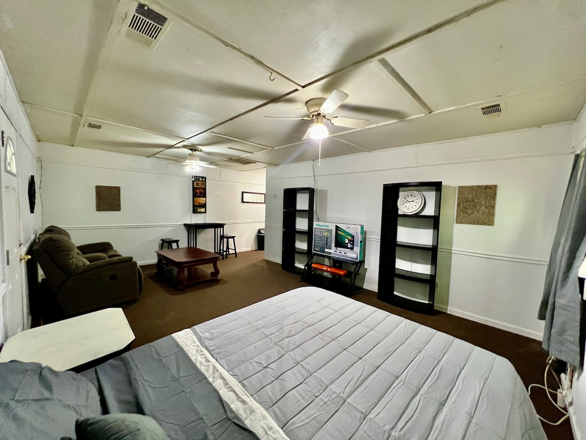 Built out in 2015-ish & completely redecorated in 2021-ish with custom woodwork. Hunter's Retreat is a separate building about 50 yards from the historic, main home and directly next door to Cedar Guest Quarters. Popular with University of Alabama guests, honeymooners, hunters & rockstars (property can accommodate tour busses & vehicle + trailer). Surrounded by limitless acreage for privacy and an indoor/outdoor experience!