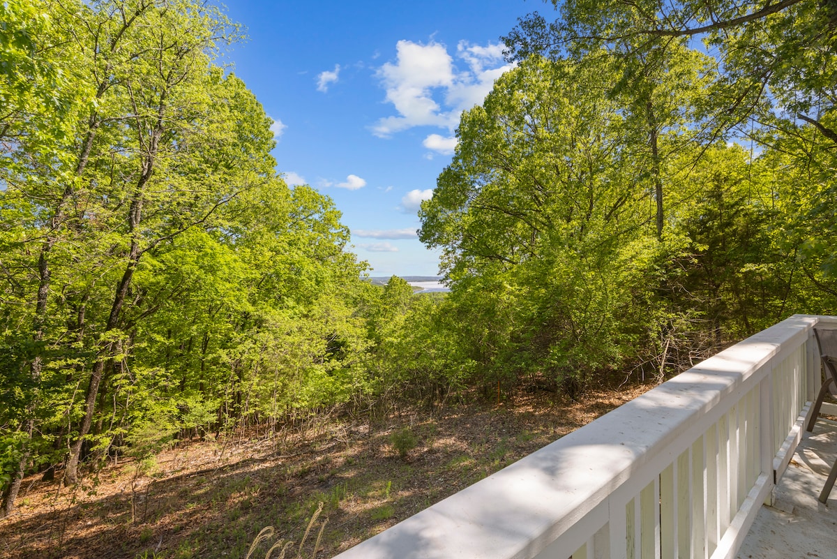 इंडियन पॉईंट येथील ट्री + हाऊसमध्ये तुमचे स्वागत आहे! हे कस्टम लक्झरी ट्रीहाऊस आराम आणि विश्रांती लक्षात घेऊन तयार केले गेले होते. चार गेस्ट्ससाठी परफेक्ट असलेले हे ठिकाण जंगलाने वेढलेले आहे आणि जमिनीपासून छतापर्यंत असलेल्या खिडक्यांमुळे नैसर्गिक प्रकाशाने भरलेले आहे, ज्यातून टेबल रॉक लेकचे सुंदर दृश्य दिसते. तुम्हाला तुमच्या स्वतःच्या खाजगी रिट्रीटमध्ये दूर असल्यासारखे वाटेल, तरीही तुम्ही पाण्यापासून आणि सिल्व्हर डॉलर सिटीपासून काही मिनिटांच्या अंतरावर असाल. हे शांत निसर्ग आणि आधुनिक शैलीचे आदर्श मिश्रण आहे.