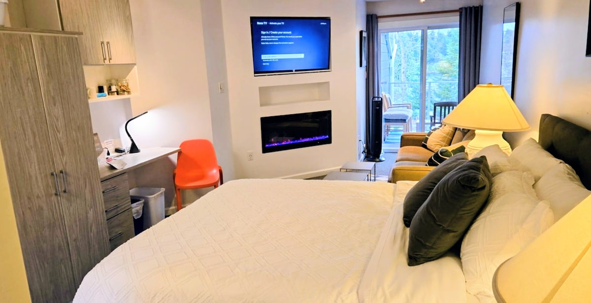उंच झाडांमध्ये वसलेले, हे मोहक कॉटेज एक आलिशान क्वीन - आकाराचा बेड, पूर्णपणे सुसज्ज किचन आणि प्रशस्त पूर्ण बाथसह शांततेत विश्रांती देते. व्हॉल्टेड छत आणि विपुल स्कायलाईट्स नैसर्गिक प्रकाशाने जागेला पूर आणतात, ज्यामुळे एक उजेडाने आणि हवेशीर वातावरण तयार होते. स्नूग कोव्हच्या सुविधा आणि विविध निसर्गरम्य ट्रेल नेटवर्कपासून काही मिनिटांच्या अंतरावर, आराम आणि साहसासाठी हा एक आदर्श गेटअवे आहे.