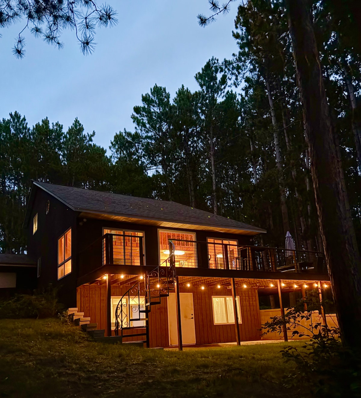 A fantastic, modern cabin on 5 private acres and your own custom treehouse with a bird's eye view over the trees! Right next to the beautiful Jay Cooke State Park and the St. Louis river, and only blocks to a dedicated bike path going 4 miles to Carlton or 15 miles to all of the restaurants, breweries, and activities in Duluth. Relax in a grove of towering pines with enough hammocks and swings for the whole family. Enjoy the fully enclosed screen porch, outdoor grill, fire ring, and dining area.