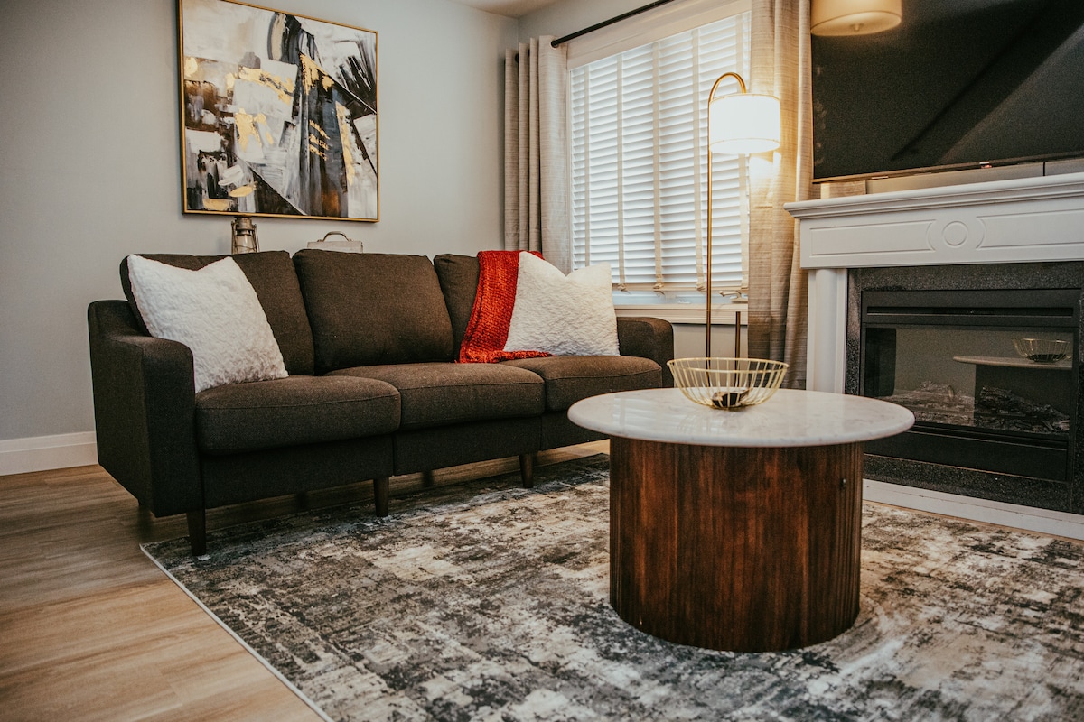 इंगलहार्ट शहराच्या मध्यभागी असलेल्या दोन क्वीन बेडरूम्ससह अपार्टमेंट, पूर्णपणे सुसज्ज. बिल्डिंग किराणा स्टोअरच्या अगदी बाजूला आहे आणि शहरातील बहुतेक ठिकाणांपासून चालत अंतरावर आहे (अरीना, रुग्णालये, शाळा आणि बॉलफील्ड्स) स्नोमोबाईल ट्रेल्स ॲक्सेसिबल आहेत आणि निसर्गरम्य कॅप - किग - इवान प्रांतिक पार्क काही अंतरावर आहे. वॉशर आणि ड्रायरची सोय करा. Keurig कॉफीसह मोठे किचन, 55" स्मार्ट टीव्ही, इलेक्ट्रिक फायरप्लेस, डबल रीसलिंग लव्ह सीट आणि सेक्शनल असलेली लिव्हिंग रूम जी दोन झोपू शकते.