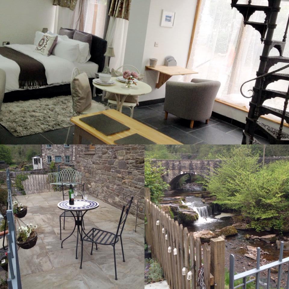 unique arty chic romantic getaway for two in the Brecon Beacons, Nr Pen Y Fan , with stunning Riverside & Spectacular waterfall view, from patio balcony, enjoy the serenity of being immersed in nature, Total relaxation . Enjoy evenings under the stars or the log burner with a glass of wine. Aesthetic country chic, decor, with modern influences .Experience a perfect oasis of calm in this private open-plan space.Bright, fresh & clean providing a charm blend of modernity & classic furnishings.