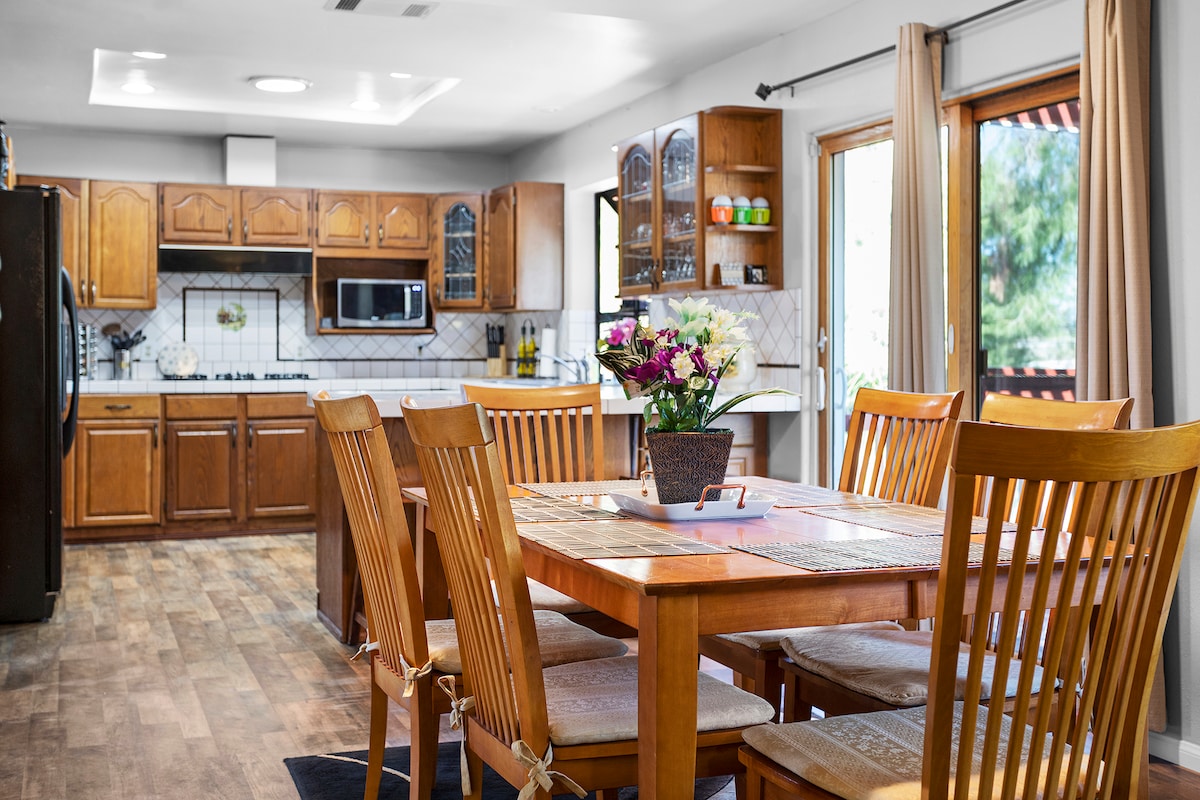 2 बेडरूम्सचा अतिशय खाजगी सुईट जो 5 लोक झोपतो, तुमचा स्वतःचा खाजगी बाथ, एक बसण्याची जागा आणि स्वतःचे स्वतंत्र प्रवेशद्वार असलेल्या घोड्याच्या रँचवर तुमचे स्वतःचे अंगण. टेमेकुला वाईन कंट्रीच्या उत्तर टोकापासून फक्त 25 मिनिटांच्या अंतरावर. गेस्ट्स माऊंटन आणि रँच व्ह्यूज, मिनी फ्रिज, कॉफी मेकर आणि मायक्रोवेव्हसह आऊटडोअर पॅटीओ वापरण्याचा आनंद घेतात. सुईट आमच्या घराशी जोडलेली आहे पण खाजगी आहे. कुटुंबांचे विशेष स्वागत केले जाते --