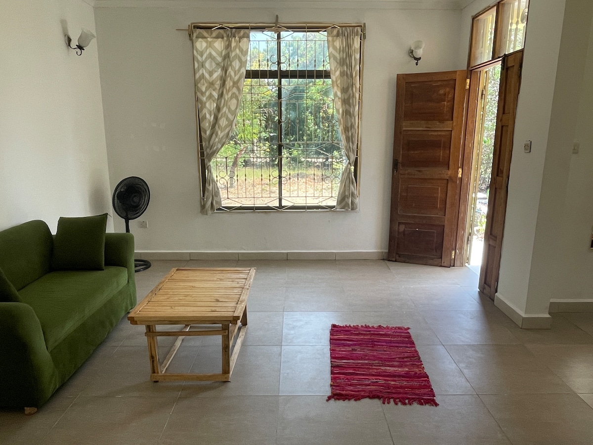या शांत ठिकाणी संपूर्ण कुटुंबासह आराम करा; मगोमेनी उसालामामधील 'वाटुमिशी हाऊसिंग' मध्ये एअरपोर्टपासून 15 मिनिटांच्या अंतरावर, सिटी सेंटरपासून 10 मिनिटांच्या अंतरावर, ऑयस्टरबेपासून 15 मिनिटांच्या अंतरावर. तुम्ही शहर एक्सप्लोर करत असाल किंवा एअरपोर्ट आणि फेरी दरम्यान झांझिबारला जात असाल, आराम करण्यासाठी आणि रिचार्ज करण्यासाठी ही योग्य जागा आहे! या सोयीस्कर गेटअवेमध्ये शांतता आणि ॲक्सेसिबिलिटीच्या आदर्श मिश्रणाचा आनंद घ्या.
