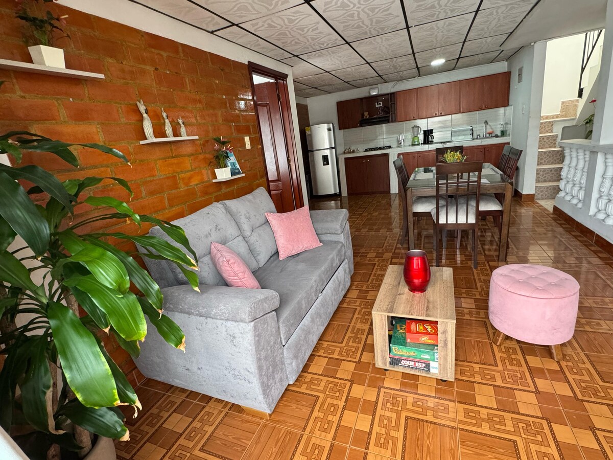पर्वतांच्या उतारातील एक छोटेसे घर जे पर्वत आणि परेराकडे पाहत आहे, जे 100+ वर्ष सामान्य हॅसियेन्डाच्या प्रॉपर्टीमध्ये आहे. सुंदर गार्डन्स आणि बहुरंगी पक्ष्यांचा आनंद घ्या, रेनफॉरेस्टने वेढलेल्या खाडीपर्यंत थोडेसे चालत जा किंवा एका दिवसाच्या पर्यटनानंतर या निसर्गरम्य नंदनवनात आराम करा. परेरा आणि अर्मेनिया दरम्यान रणनीतिकरित्या स्थित, आयकॉनिक सालेन्टोपासून फक्त 15 किमी आणि फिलांडियापासून 7,3 किमी. उंची: 1,800mt सरासरी हवामान 68F/20C.