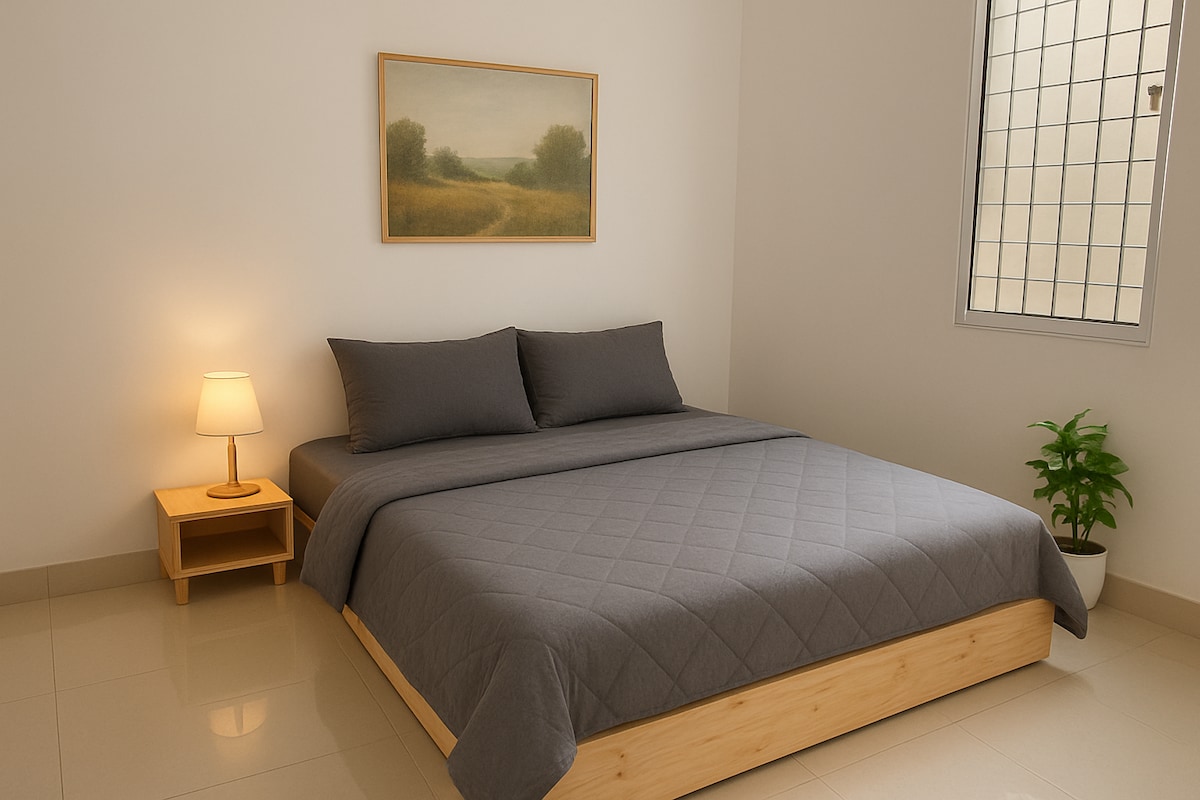 मिंट एअरपोर्ट सेंट्रल हॉटेल दानांगमध्ये तुमचे स्वागत आहे – एयरपोर्ट आणि सिटी सेंटरजवळील तुमचे आदर्श वास्तव्य! 🛏️ आरामदायक वास्तव्य: आरामदायक व्हायबसाठी ताजे हिरवे टोन आणि नैसर्गिक प्रकाशाने स्टाईल केलेले, या प्रशस्त रूममध्ये क्वीन बेड आणि खाजगी बाथरूमचा समावेश आहे. 🍃 दैनंदिन आराम: विनामूल्य बाटलीबंद पाणी, दैनंदिन हाऊसकीपिंग, ताजे टॉवेल्स. 🛵 सेवा: आम्ही एअरपोर्ट ट्रान्सफर्स, मोटरसायकल रेंटल्स, टूर बुकिंग, हान रिव्हर क्रूझ आणि स्थानिक खाद्यपदार्थांच्या शिफारसी ऑफर करतो.