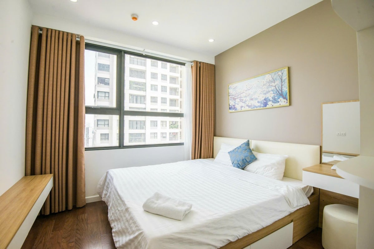 लक्झरी अपार्टमेंट हनोईच्या मध्यवर्ती भागात आधुनिक आणि आरामदायक शैलीसह डिझाइन केलेले आहे, जिथे तुम्ही स्मारक व्हिनकॉममध्ये सहजपणे खरेदी करू शकता, 5 -10 मिनिटांच्या आत अत्यंत स्वादिष्ट रेस्टॉरंट्स, खाद्यपदार्थ, कॅफेमध्ये खाऊ शकता. आम्ही आमच्या काँडोमध्ये नेहमीच स्वच्छ आणि सुगंधित असतो. + उच्च दृश्यासह बाल्कनी. वाईड स्क्रीन टीव्हीवर दाखवलेल्या आणि नेटफ्लिक्ससह प्री - इन्स्टॉल केलेल्या चित्रपटांसह तुम्ही सर्वात रोमँटिक पद्धतीने तुमच्या वास्तव्याचा आनंद घेऊ शकता