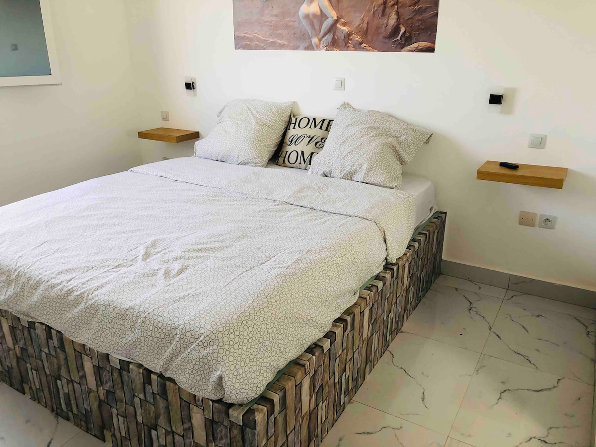 Venez vous relaxer entre amis ou en famille dans cette magnifique villa toute neuve avec piscine et jardin. La Villa est dans une petite résidence de quelques villas indépendantes au coeur d'Ngurigne à 10mn de belles plages. La villa de plain-pied est décorée avec soin et possède également un petit bungalow indépendant. De nombreuses activités proches comme AccroBaobab, le parc aux oiseaux, le parc de Bandia (Safari) ou les plages de Saly et Somone.