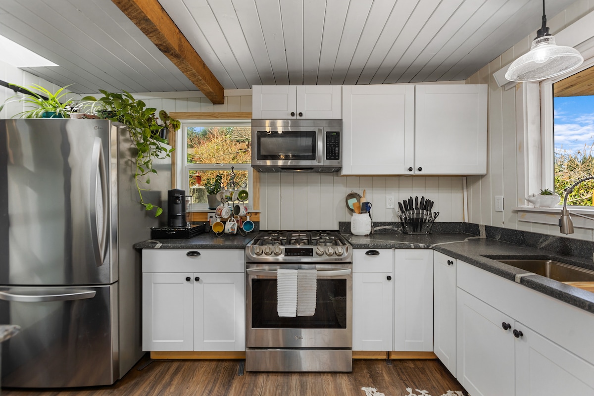 Tiny home tucked in the rural Forest Glade area of Machias, Snohomish. Only 7 minutes from Machias Meadows & Pretty Bird event venues. Warm up by the woodstove w/ a good book, or roast sтАЩmores at your private fire pit, and sip coffee on the porch as our resident deer pass by. Whether your here for wedding, some outdoor adventure, or a lazy lake days, you'll be tucked away in the woods, while being near it all. Unwind with a glass of wine and soak in the stillness of this peaceful rural retreat.