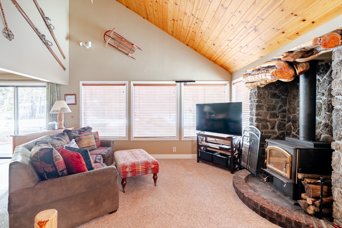 Room With A View Condo has a rustic feel with exposed wood beams, tall ceilings, an open floor plan and a large cozy stone fireplace. This is the feel you want when you vacation to Sun River. Stunning views of the rolling hills, and the Oregon Cascade Range including Mt. Bachelor and Broken Top are visible from the living room, deck, and your king size bed. Conveniently located a short walking path to Sun River Lodge, and The Village. Wifi, cable, smart TV, and DVD provided. Fully stocked.