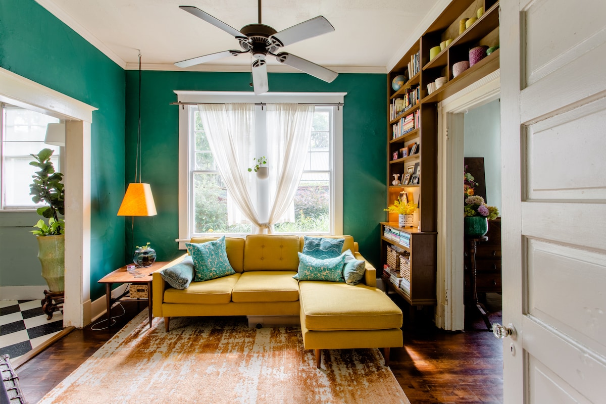 सवानाच्या ऐतिहासिक स्ट्रीटकार डिस्ट्रिक्टमध्ये वसलेला, हाफ मून हाऊस येथील गार्डन स्टुडिओ हे शहरातील एक खाजगी रिट्रीट आहे, जे अडाणी केबिनच्या भावनेसह मजेदार, मध्य - शतकातील आधुनिक शैलीचे मिश्रण करते. या ओपन - कन्सेप्ट जागेमध्ये किचन/ आवश्यक गोष्टी, एक अतिरिक्त लांब क्लॉफूट टब वाई/ हँड शॉवर आणि शांत बागेकडे पाहणाऱ्या जमिनीपासून छतापर्यंत खिडक्या आहेत. 1914 च्या औपनिवेशिक पुनरुज्जीवन घराच्या मागे असलेल्या ऐतिहासिक कॅरेज घरात सेट करा, हे फोर्सिथ पार्क, स्टारलँड आणि टॉप रेस्टॉरंट्सपासून काही मिनिटांच्या अंतरावर आहे.