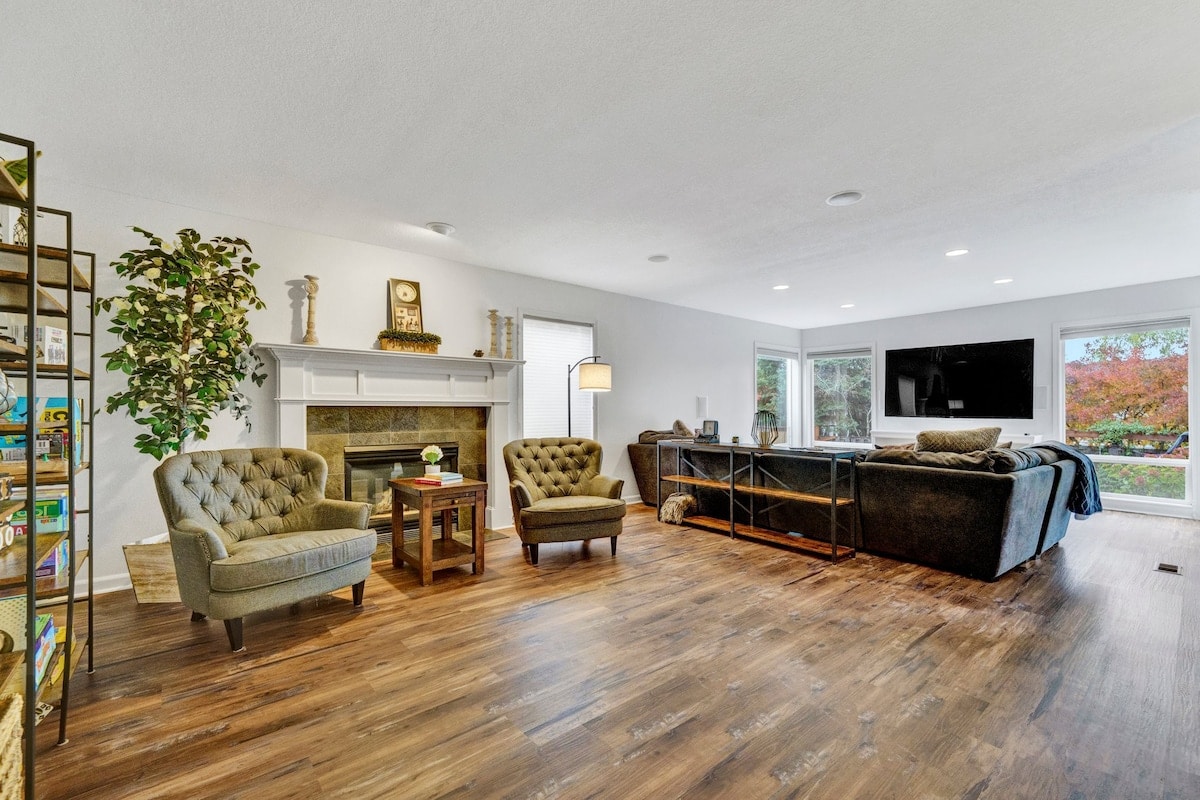 या चालण्यायोग्य 4BR, 2.5BA पोर्टलँड हेवनमध्ये ताज्या PNW हवेत श्वास घ्या. समोरच्या दरवाजातून बाहेर पडा आणि बडबडणाऱ्या नाल्याच्या पलीकडे जवळच्या खाद्यपदार्थ, कॉफी शॉप्स, ट्रेल्स आणि स्थानिक मनोरंजनाच्या ठिकाणी जा. विचारपूर्वक क्युरेट केलेल्या इंटिरियरमध्ये फायरसाईडवर आराम करा किंवा गेझबो आणि पॅटिओ सीटिंगसह कुंपण घातलेल्या बॅकयार्डमध्ये स्टार्सच्या खाली डिनिंगचा आनंद घ्या. डाउनटाउनपासून फक्त 20 मिनिटांच्या अंतरावर असलेले हे उबदार, घरासारखे बोहो आश्रयस्थान विश्रांती आणि साहस दोन्ही शोधत असलेल्या ग्रुप्स आणि कुटुंबांसाठी परिपूर्ण आहे!