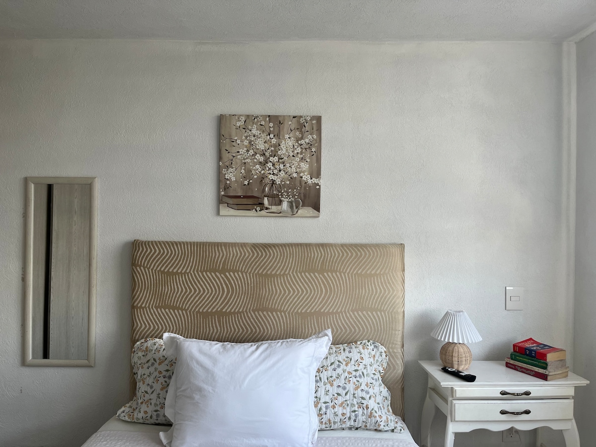 वरच्या मजल्यावर सुंदर अपार्टमेंट, - Tlaquepaque Centro मधील एक शांत क्षेत्र पॅरियनपासून -5 मिनिटांच्या अंतरावर एअरपोर्टपासून 20 मिनिटांच्या अंतरावर प्लाझा फोरमपासून -5 मिनिटांच्या अंतरावर - बोडेगा ऑरेरा (किराणा दुकान) 4 ब्लॉक दूर. आनंददायी वास्तव्यासाठी तयार केलेल्या जागेचा आनंद घ्या -1 बेडरूम - डिस्नी + आणि स्टार+ विनामूल्य -1 डबल बेड -1 अतिशय आरामदायक सोफा - सर्व सुविधांसह किचन - ब्रेकफास्ट बार, डायनिंग रूम, इंटरनेट , स्मार्ट टीव्ही आणि पूर्ण बाथरूम.