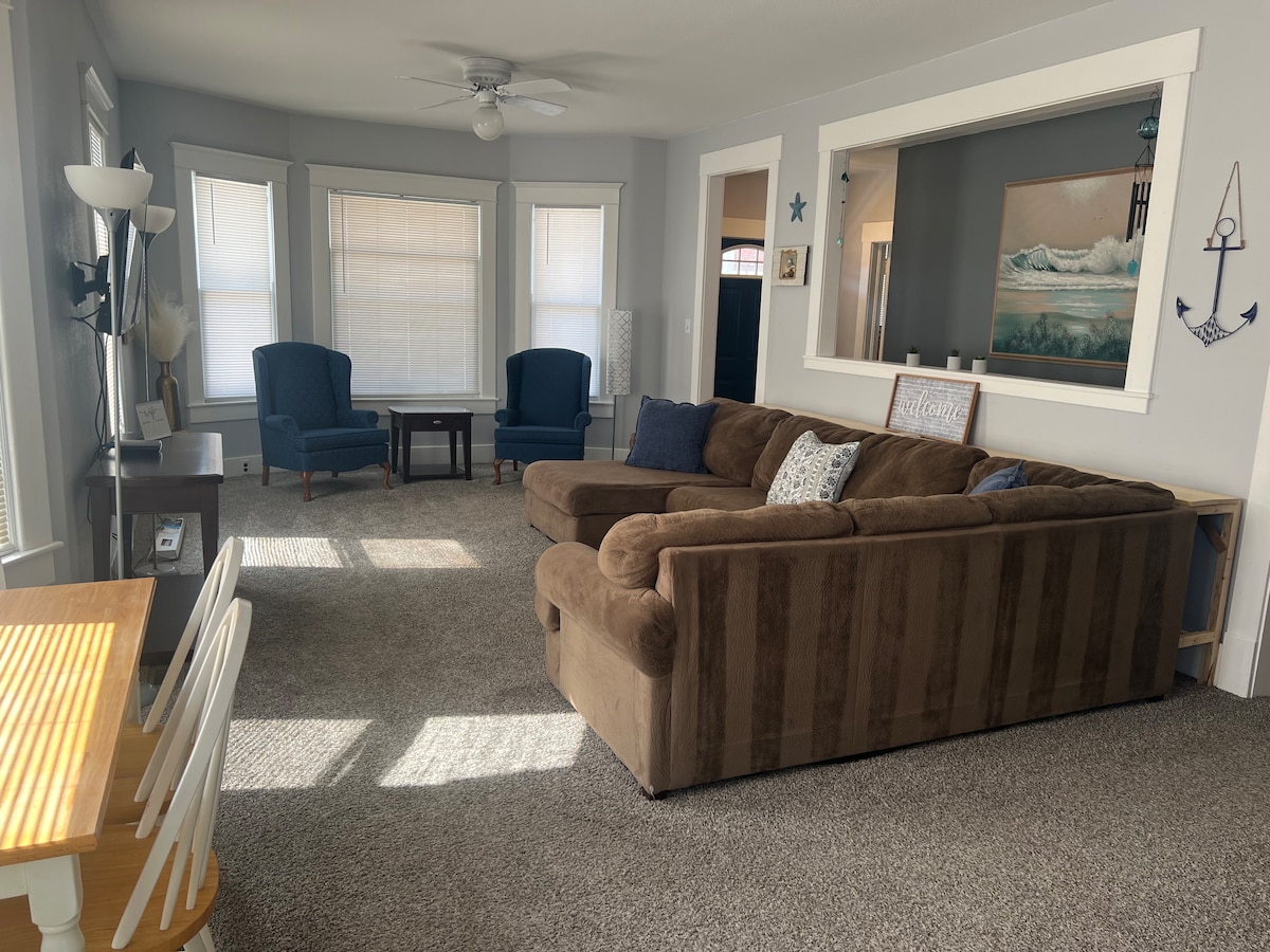 आमच्याकडे वॉशर आणि ड्रायर उपलब्ध असल्यामुळे दीर्घकालीन वास्तव्यासाठी घर खूप आरामदायक आणि उत्तम आहे. आवश्यक असल्यास, वादळांच्या वेळी सुरक्षिततेसाठी आतील भागातून ॲक्सेस असलेले एक तळघर आहे. पॅटीओ खूप एकाकी आहे आणि बाहेरील जेवणासाठी उत्तम आहे; एक कोळसा ग्रिल प्रदान केले आहे. सनरूममध्ये एक डेस्क आणि खुर्ची आणि उत्तम वायफाय सेवा आहे. चार गेस्ट्ससाठी आरामदायक परंतु 6 गेस्ट्सपर्यंत सामावून घेऊ शकतात. (बेडरूममध्ये किंग साईझ बेड आहे, सनरूममध्ये दोन जुळे मुले आहेत आणि सोफा क्वीन साईझ बेडमध्ये फोल्ड केला आहे)