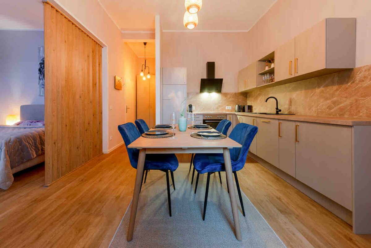 आमचे अपार्टमेंट "हनोई" 50 चौरस मीटर आहे आणि त्यात पूर्णपणे सुसज्ज किचन आणि लिव्हिंग/स्लीपिंग एरिया आहे. अपार्टमेंट अंगणात खूप शांत आहे आणि एक उदार बाल्कनी आहे. • सेंट्रल स्टेशनपासून 22 मिनिटांच्या अंतरावर • मार्केट स्क्वेअरपर्यंत 10 मिनिटांच्या अंतरावर • पूर्णपणे सुसज्ज किचन • प्रशस्त बाल्कनी • वॉशिंग मशीन • बॉक्स स्प्रिंग बेड • शॉवर • रेस्टॉरंट्स आणि सुपरमार्केट्स अगदी शेजारी लॉटमध्ये पार्किंगची जागा (3 मिनिटे चालण्याचे अंतर) प्रति दिवस 10 € साठी