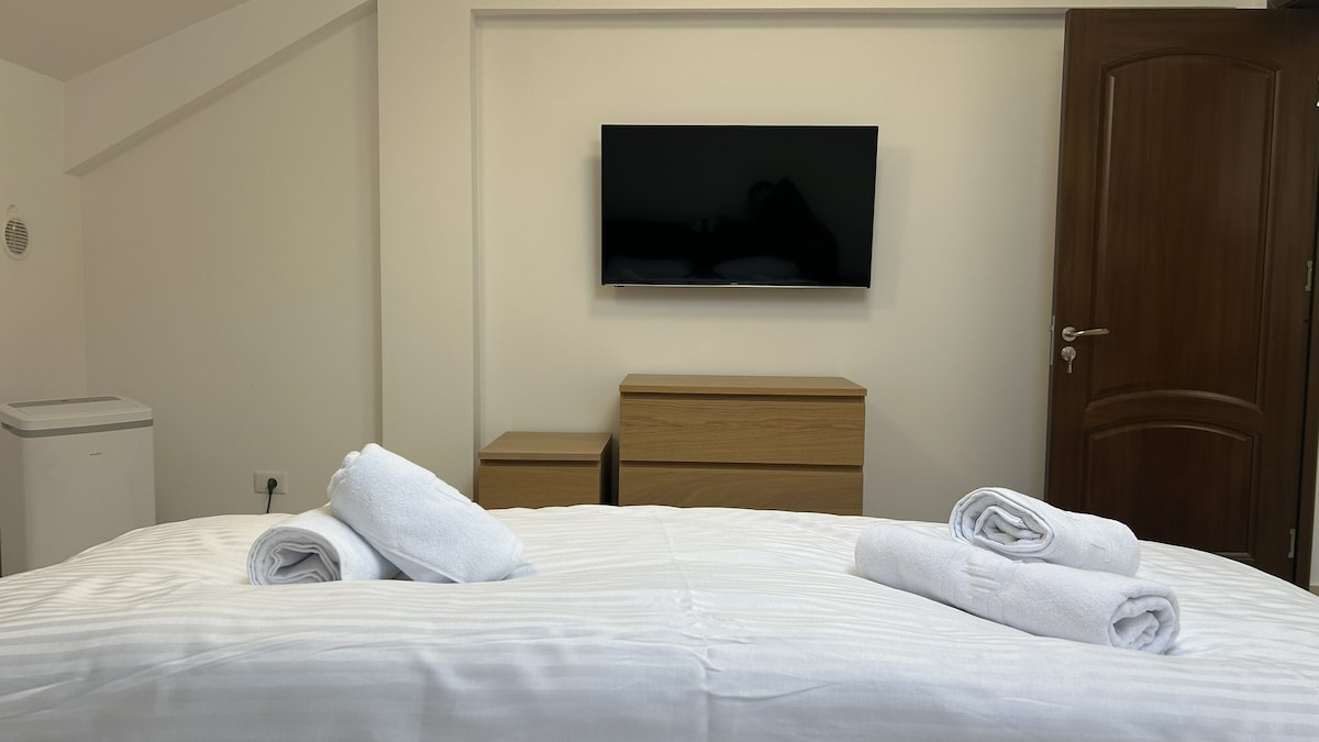 Relax in this comfortable and private apartment located in Tomești, just a short drive from Iași. The apartment offers a cozy sleeping area with a comfortable bed and fresh linens, a private bathroom, and a bright, clean atmosphere. Guests also enjoy free Wi-Fi, TV, private parking, and access to a fully equipped kitchen. A great choice for both short and longer stays.