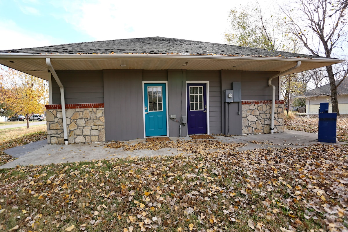 या प्रशस्त कार्यक्षमता - शैलीच्या सुईटमध्ये आरामदायी वास्तव्यासाठी तुम्हाला आवश्यक असलेल्या सर्व गोष्टी आहेत. हे तीन युनिट्सपैकी एक आहे जे विनामूल्य लाँड्री रूम, अंगण, अंगण आणि पार्किंग शेअर करतात. हे शहराच्या ईशान्य भागातील एका उत्तम परिसरात डाउनटाउन, KSU कॅम्पस, शॉपिंग आणि तलावापासून 10 मिनिटांपेक्षा कमी अंतरावर आहे. पर्पल रूम, ज्याला आम्ही प्रेमळपणे म्हणतो, शांत, उज्ज्वल, स्वच्छ आणि घरच्या अनेक आरामदायक गोष्टींनी भरलेले आहे, अगदी साउंड मशीनदेखील. तुम्हाला काही प्रश्न असल्यास आम्हाला मेसेज पाठवा.