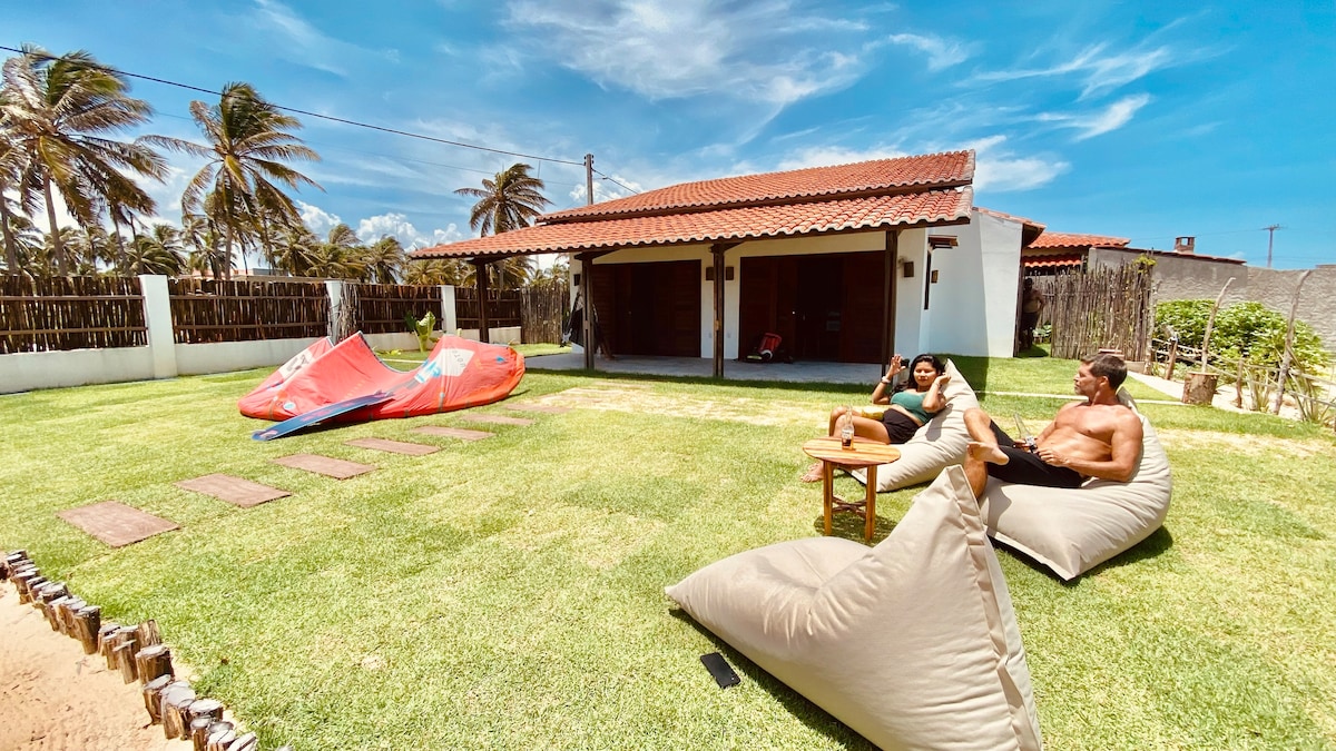 कासामारे वाळूपासून 60 मीटर अंतरावर आहे, ग्वाजिरु बीचवर, फोर्टालेझाच्या उत्तरेस 2 तासांचे मासेमारीचे गाव आहे. सिएराच्या संस्कृतीने प्रेरित साधे, मोहक आणि किनारपट्टीच्या आर्किटेक्चरसह घर. काईटसर्फिंगचा सराव करण्यासाठी (किंवा शिकण्यासाठी) जगातील सर्वोत्तम ठिकाणांपैकी एक. समुद्रकिनारे, खड्डे आणि खारफुटी, बग्गी राईड्स आणि समृद्ध स्थानिक पाककृती यासारख्या नैसर्गिक सौंदर्याव्यतिरिक्त. तुम्ही कुटुंब आणि मित्रमैत्रिणींसह आराम करत असाल किंवा बाहेर जात असाल, तर ही अशी जागा आहे जी नंदनवनाचा खरा अर्थ परिभाषित करते.