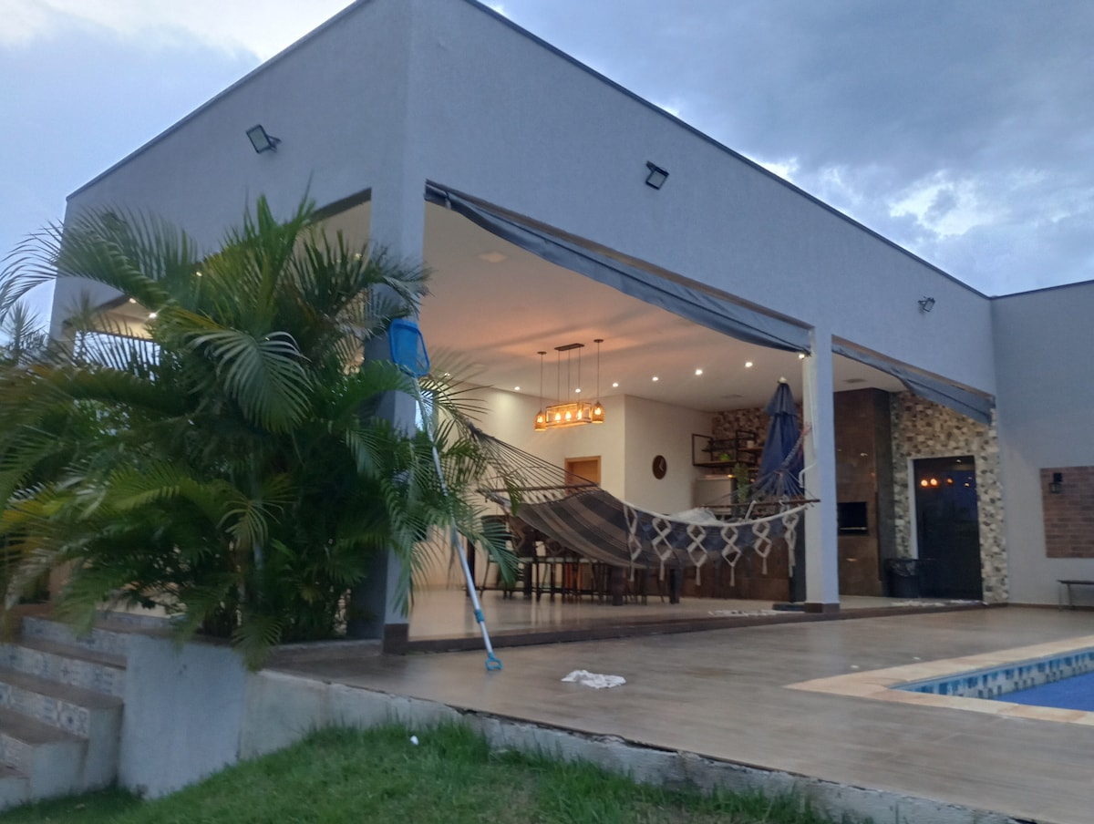 विसर्जन: या शांत आणि स्टायलिश जागेत आराम करा. स्विस आल्प्स शॅलेट. सेराडोमधील आल्प्स पर्वतरांगांमध्ये असल्यासारखे वाटेल. फुले, विदेशी झाडे, शहरापासून ४ अंश खाली हवामान असलेले. बाथटबमध्ये आकर्षक आंघोळीचा आनंद घ्या. मोफत उपलब्ध: भरड मीठ, साखर, लसूण, कांदा, मसाले, ऑलिव्ह ऑइल, बटर, पॅन, स्वीटनर, कटलरी, ग्रॅनोला, मध, वाट्या, एअर फ्रायर - शॅम्पू आणि कंडिशनर, लिक्विड सोप, बॉडी ऑइल, मॉइश्चरायझर्स - बेडिंग, बाथ टॉवेल - ब्लूटूथ साउंड, नेटफ्लिक्स, स्पॉटिफाय - स्मार्ट टीव्ही एअर फ्रायर (पीईटी फ्रेंडली) - जोडप्यासाठी ०१ ट्रीट