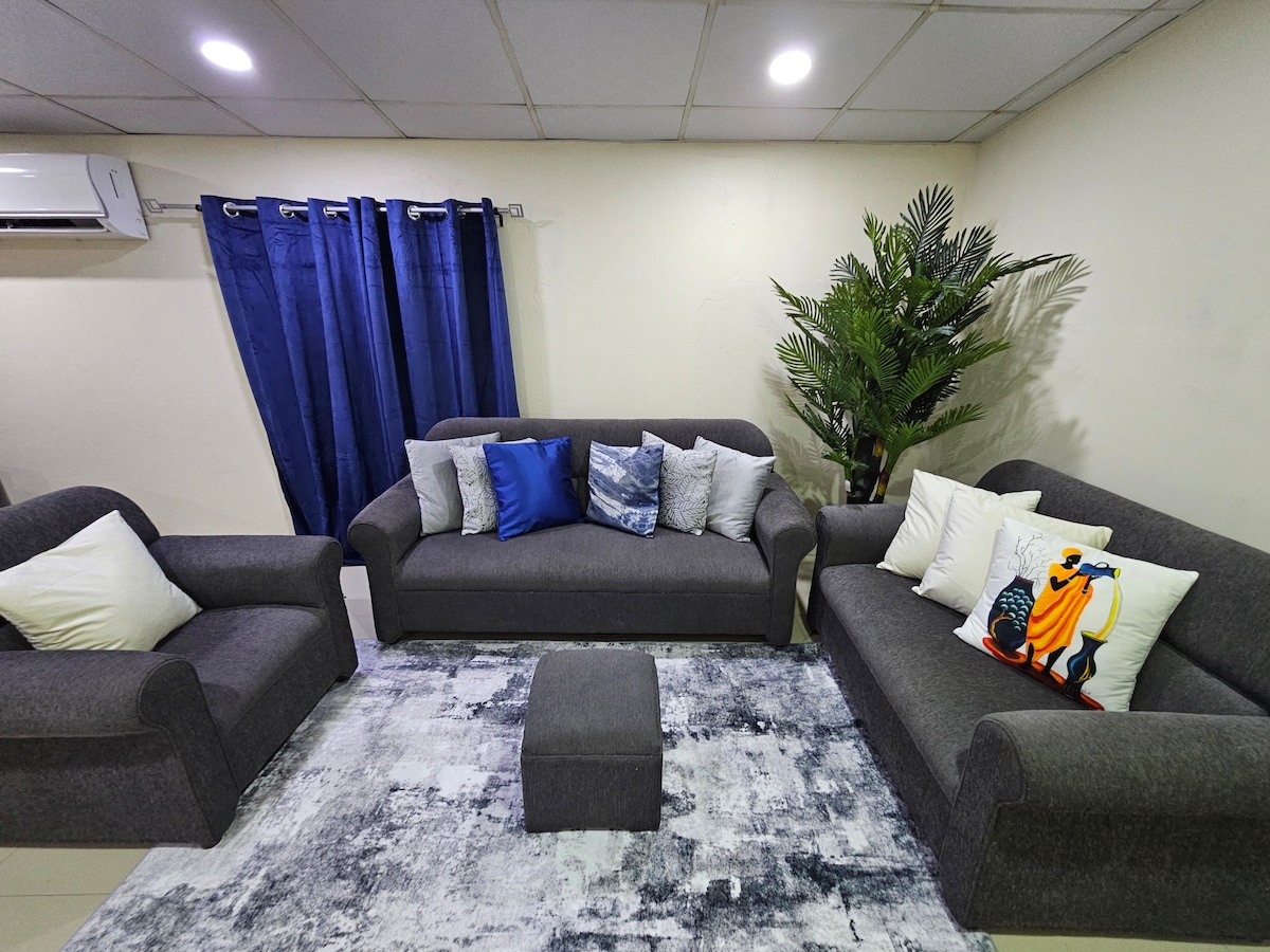 Enjoy a stylish experience at this centrally located place. Beautiful one bedroom apt. is designed for comfort, style, and unbeatable convenience. This cosy atmosphere is the perfect size for solo/business travelers or couples You are literally 2 mins walking distance from the area's main attractions. The Mall, TGIF Restaurants, Supermarkets. Easy accessibility to all local convenient places, yet remains a peaceful and quiet haven for a restful stay. Book your perfect, convenient getaway today!