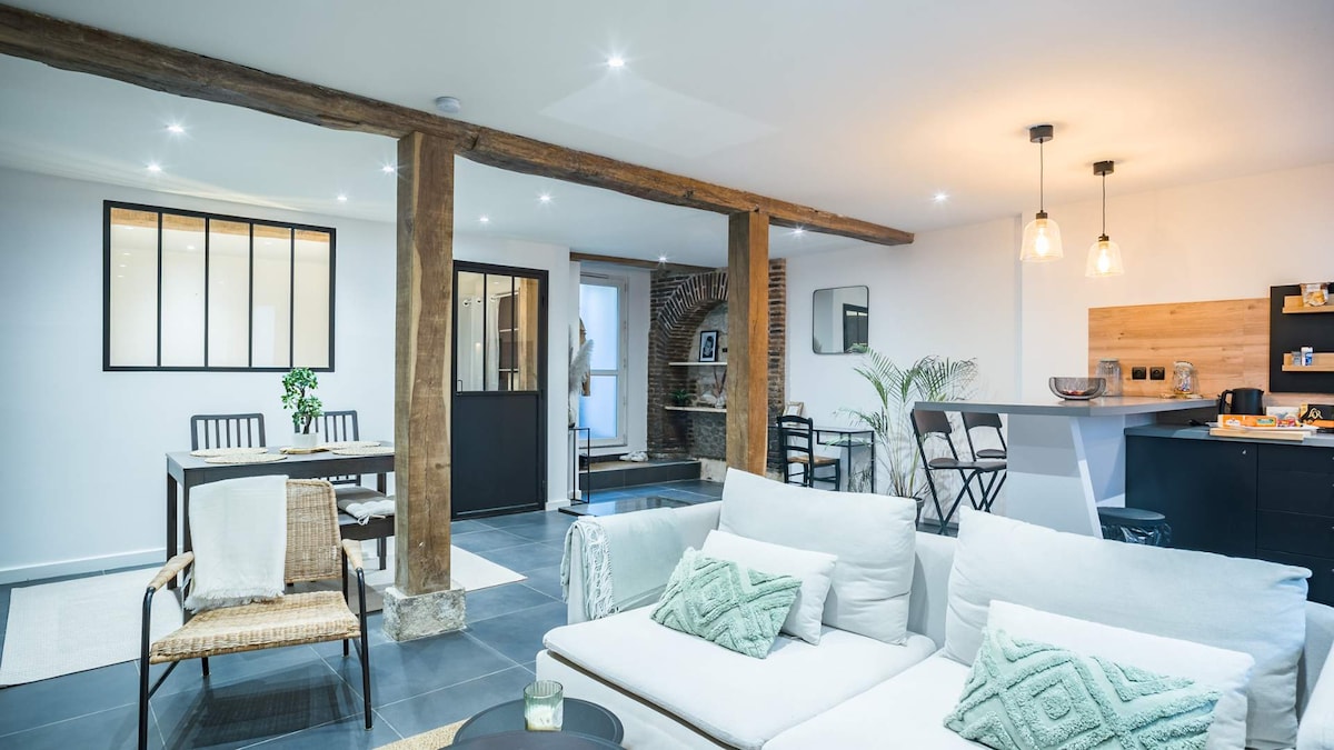 रेल्वे स्टेशनपासून 5 मिनिटांच्या अंतरावर आणि शहराच्या मध्यभागी पायी 10 मिनिटांच्या अंतरावर, 19 व्या शतकातील फॅक्टरीच्या मध्यभागी असलेला हा अपवादात्मक लॉफ्ट शोधा. अतुलनीय आरामासाठी ✨ उदार व्हॉल्यूम इलेक्ट्रॉनिक देखरेखीसह अल्ट्रा - 🚗 सुरक्षित खाजगी पार्किंग फॅक्टरीच्या अंगणाच्या दृश्यांसह, नैसर्गिक प्रकाशाने भरलेल्या नेत्रदीपक काचेच्या खिडकीने भरलेले 🌞 एक अत्याधुनिक डिझाइन ऐतिहासिक मोहकता आणि आधुनिकता जिथे भेटतात अशा या जागेमुळे स्वतःला भुरळ घालू द्या.