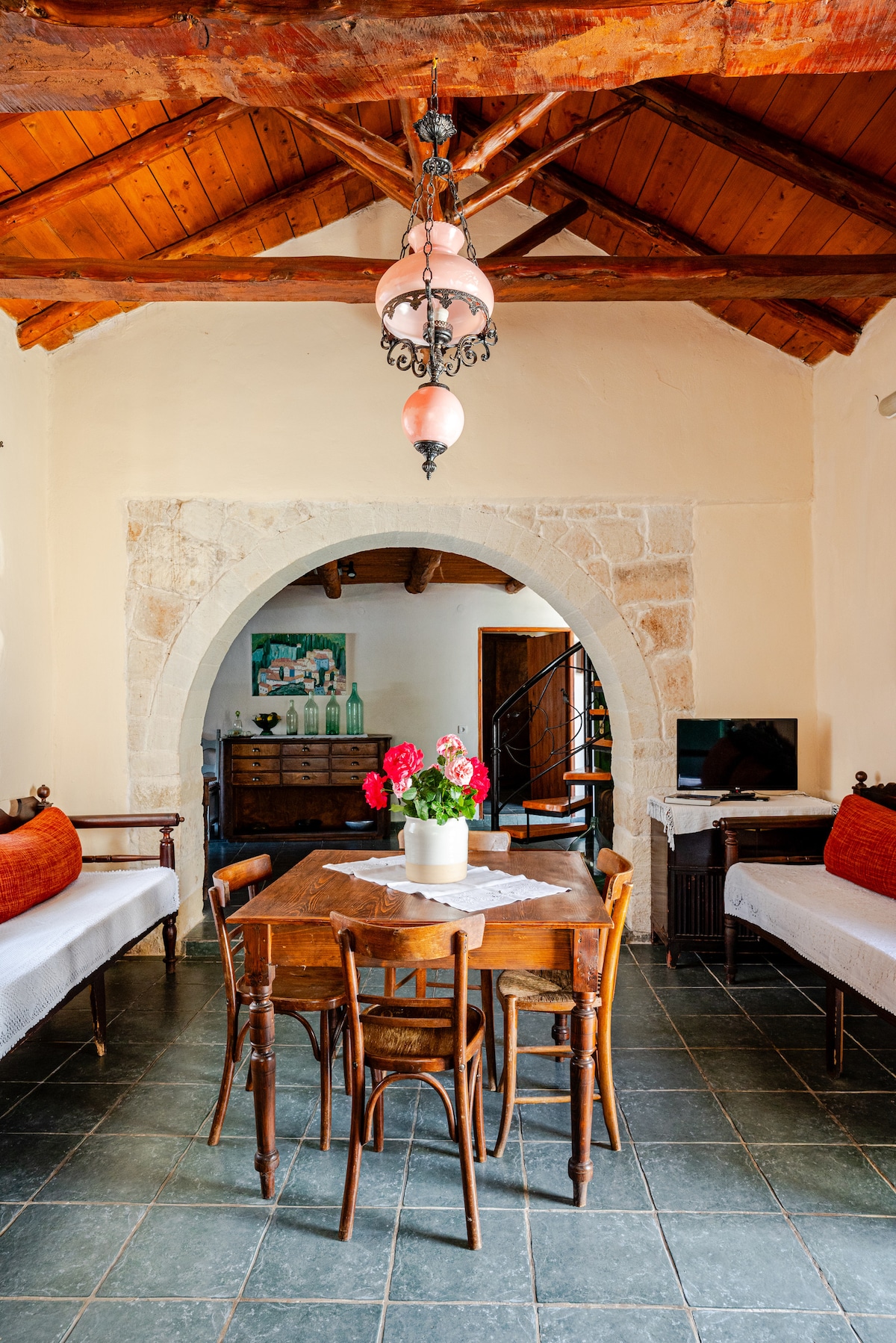 A small stone residence in the village of Armeni in the northeast of the prefecture of Chania and only 2.5 km from the seaside village of Kalyves, just 10 km from the port of Souda and 20 km from the airport, and 2 minutes from the center of the picturesque village. The location of the residence offers the guest tranquility and moments of unique relaxation. Wonderful landscapes with trees surround the exterior of the house, in a lush natural environment.