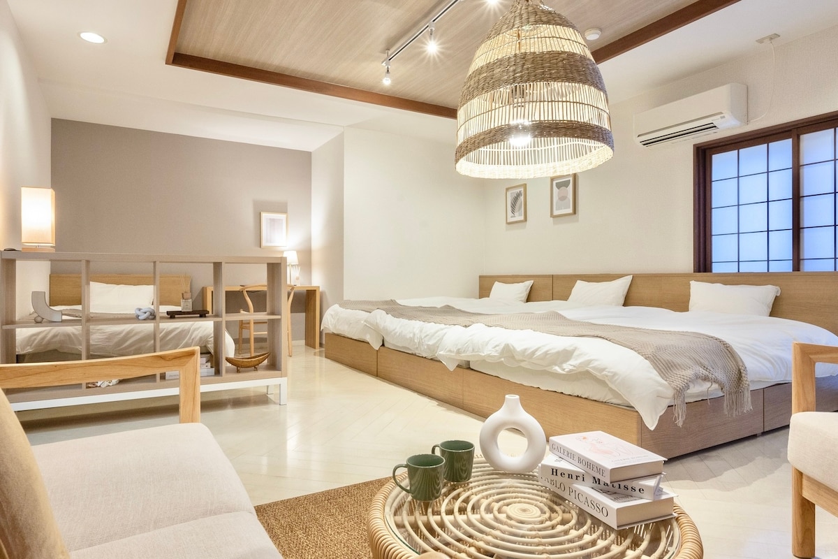 ओसाकाच्या जोटो वॉर्डमध्ये स्थित, हे 1909 ऐतिहासिक घर एक दुर्मिळ दुसरे महायुद्ध वाचलेले आहे. प्रख्यात डिझायनरने 2015 मध्ये नूतनीकरण केलेले, ते 150 - मध्ये पसरलेले आहे, शांत शहराच्या मध्यभागी असलेल्या रिट्रीटमध्ये आधुनिक लक्झरीसह ऐतिहासिक मोहकता मिसळते. त्याचे मोहक डिझाईन भूतकाळ आणि वर्तमानातील सुसंगत आहे, सांस्कृतिक विसर्जन आणि प्रशस्त आरामदायी आहे. दोन बाथरूम्स, वेगळे शौचालये, वॉशबासिन आणि मोठ्या बाथरूमसह, हे ग्रुप्ससाठी गोपनीयता आणि स्वच्छता सुनिश्चित करते. अनुभव संस्कृती, इतिहास आणि तुमच्या परिपूर्ण ओसाका वास्तव्याची वाट पाहत आहे.