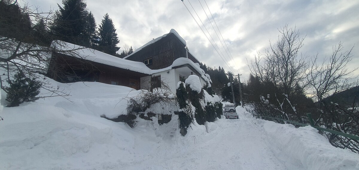 2022 मध्ये दोन बेडरूमच्या A - फ्रेम घराचे नूतनीकरण करण्यात आले. ही जागा मास्टर बेडरूममधील मोठ्या खिडकीतून निसर्गाचे आणि रात्रीच्या आकाशाचे सुंदर दृश्ये देते. प्रवाशांना अनोख्या खेळाच्या इंटिरियरचा आनंद मिळेल. हे छोटेसे घर जंगलांनी वेढलेले आहे परंतु बन्सका बायस्ट्रिकाच्या ऐतिहासिक शहरापासून फक्त काही मिनिटांच्या अंतरावर आहे. प्रशस्त गार्डनमध्ये फायरपिट आणि ग्रिल आहे.
