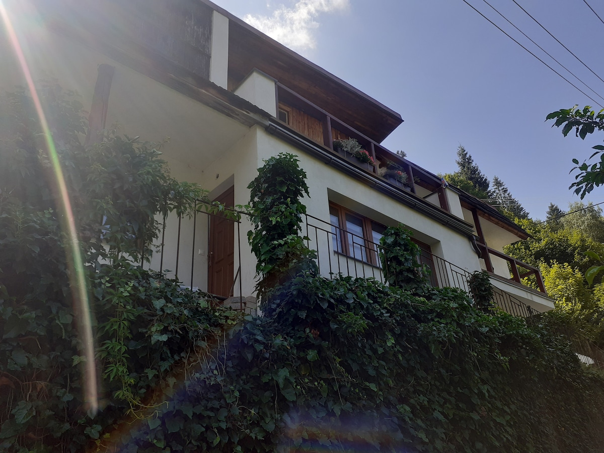 अपार्टमेंट नवीन पुनर्निर्मित केले गेले आहे, आधुनिक सुसज्ज स्वयंपाकघर, स्वतंत्र प्रवेशद्वार आहे. गावाचे सर्वात सुंदर दृश्य आमच्या व्हरांड्यातून दिसते. इथे शांतता आहे, पण तुम्हाला कंटाळा येणार नाही. आम्ही स्थानिक आहोत, आम्हाला गाव आणि आसपासचा परिसर इतर कोणालाही नाही इतका माहित आहे. आम्ही सल्ला देण्यास आनंदित आहोत. तुम्ही जुन्या खाणींची स्मारके, निसर्ग एक्सप्लोर करू शकता. आम्ही पार्किंग, मसाज, सायकल्स, स्लेड्स प्रदान करतो. आमच्याकडे खेळाचे मैदान आहे. आम्ही मेंढे, मासे आणि मांजरी पाळतो. लहान मुलांना देखील येथे खूप मजा येईल. फायरप्लेस, गार्डन हाऊस, मीडोची कमतरता नाही. हिवाळ्यात तुम्ही घरापासूनच क्रॉस - कंट्री स्कीइंग आणि स्की अल्पाइन ट्रेकिंग सुरू करता आणि संपवता.