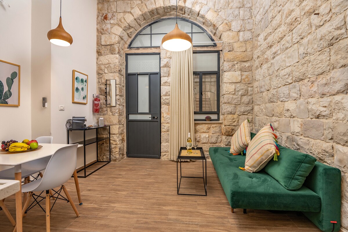 Welcome to Uriel Suite in Argaman Compound! This luxurious suite is uniquely designed and perfect for a couple + 1. It includes a living room with a sofa bed, a loft with a Jewish double bed, a bathroom with a bathtub, a dining area, and a kitchenette with a coffee nook. In the heart of the Old City of Safed, just steps away from ancient synagogues, art galleries, shops, and restaurants. The compound is designed with attention to detail, to offer you an unforgettable experience.