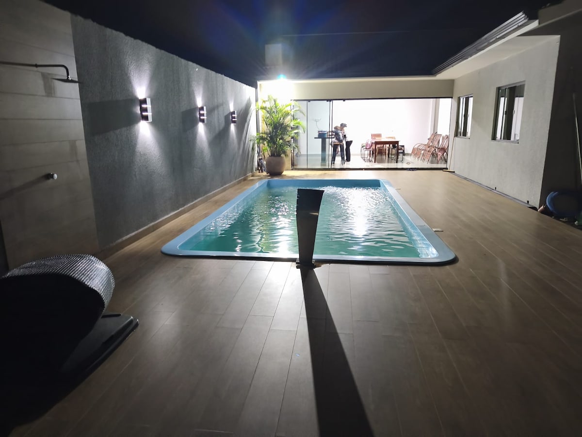 Chácara com piscina Relaxe com toda a família nesta acomodação tranquila,Rio aos fundos muito espaço com árvores;possui 2 quartos que acomoda 4 pessoas cada quarto