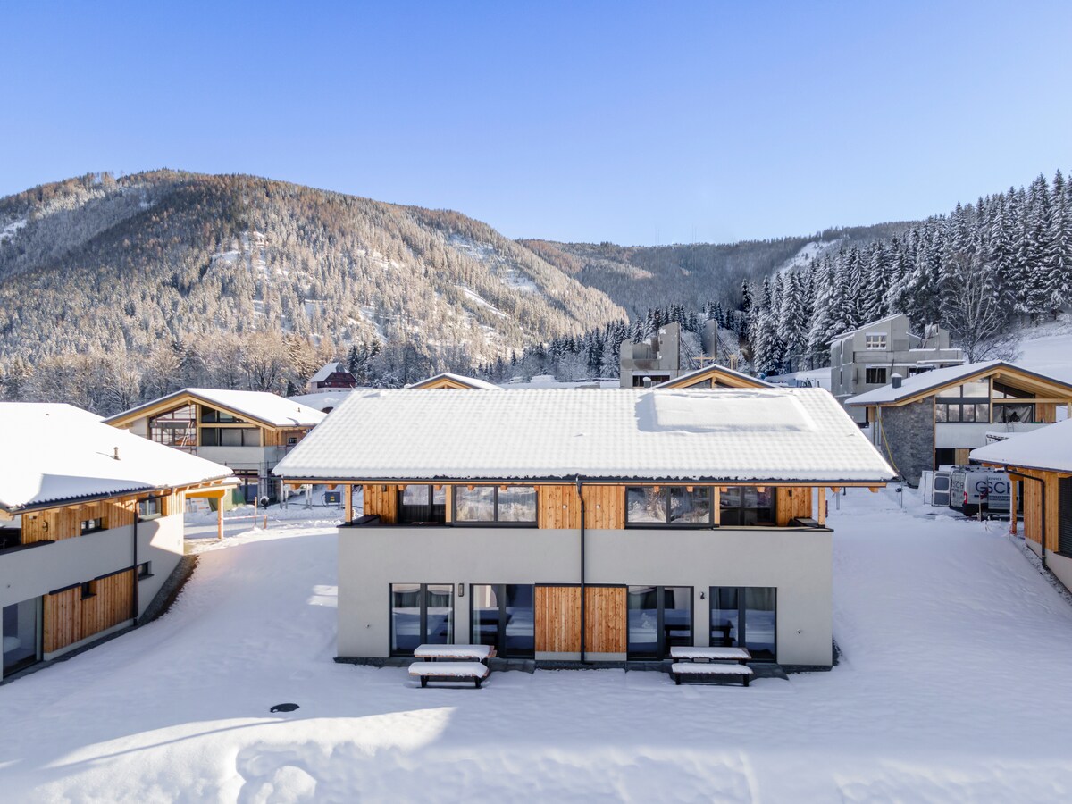 बर्गरेसोर्ट लाच्टल येथील निवासस्थान अंदाजे उंचीवर आहे. 1,600 मीटर आणि त्याच्या आधुनिक इंटिरियर डिझाइनसह प्रभावित करते. नैसर्गिक लाकूड एक उबदार, आकर्षक वातावरण तयार करते ज्यामध्ये तुम्हाला लगेच घरी असल्यासारखे वाटेल. वोलझर टाउर्नच्या मध्यभागी आणि 6 - सीटर शॅरलिफ्टपासून फक्त काही शंभर मीटर अंतरावर, रिसॉर्ट वर्षभर स्टायरियामध्ये सक्रिय सुट्टीसाठी आदर्श परिस्थिती देते. तुमच्या खाजगी सॉनामध्ये तुम्ही निर्विवादपणे माघार घेऊ शकता आणि दिवसाच्या शेवटी आराम करू शकता.