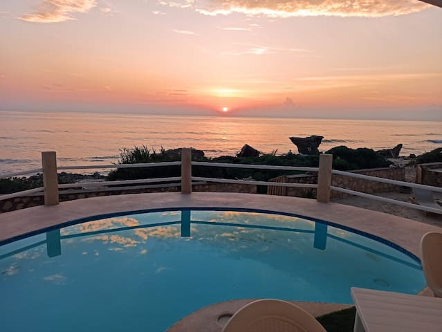 Todo comienza cuando mis papás deciden abrir las puertas pensando en algo sencillo:recibir con amor .Un día un taxi llegó con unos turistas buscando un cuarto. Así,nació Punta Piedra como hospedaje.Fue el inicio de una historia llena de memorias.En el 2019,tomamos las riendas del lugar:la nueva generación. Renovamos sin olvidar lema: Your home away from home.Cada detalleha sido pensado para quienes buscan más que un hotel:buscan un refugio