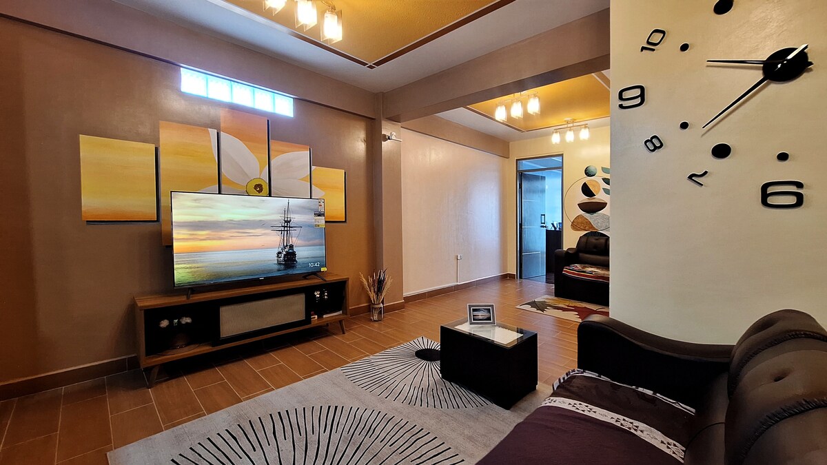 या अनोख्या आणि शांत गेटअवेवर आराम करा. अपार्टमेंटमध्ये सर्व आरामदायक गोष्टी आहेत. 2 - सीटर बेड आणि खाजगी बाथरूम असलेली एक रूम आहे. 2 - सीटर बेड आणि बंद असलेली दुसरी रूम. 2 पूर्ण बाथरूम्स, डायनिंग रूम,लिव्हिंग रूम, अमेरिकन किचन ज्यामध्ये तुम्हाला तुमचे आवडते जेवण तयार करण्यासाठी आवश्यक असलेल्या सर्व गोष्टी आहेत. सुविधांमध्ये खाजगी आणि विनामूल्य पार्किंग. 24 तास टॅक्सी सेवा