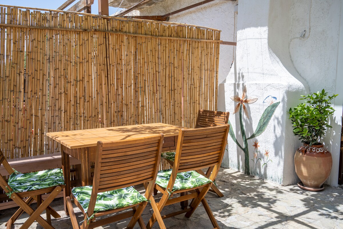 गावाच्या मध्यभागी असलेल्या शांत पादचारी रस्त्यावर अंगण असलेले 40m2 वेगळे घर, जिथे सर्व पारंपारिक दुकाने, टेरेस, कॅफे, मिनी मार्केट्स आणि फळे मार्केट आहे त्या चौकापासून 100 मीटर अंतरावर आहे. 1.5 किमीच्या अंतरावर चिओना आणि कोरेमेनोसचे समुद्रकिनारे आहेत आणि सुमारे 6 किमी अंतरावर विदेशी पाम जंगल आणि बीच एरमुपोलीसह बीच वाय आहे.